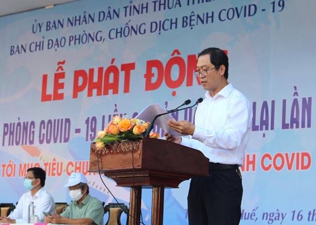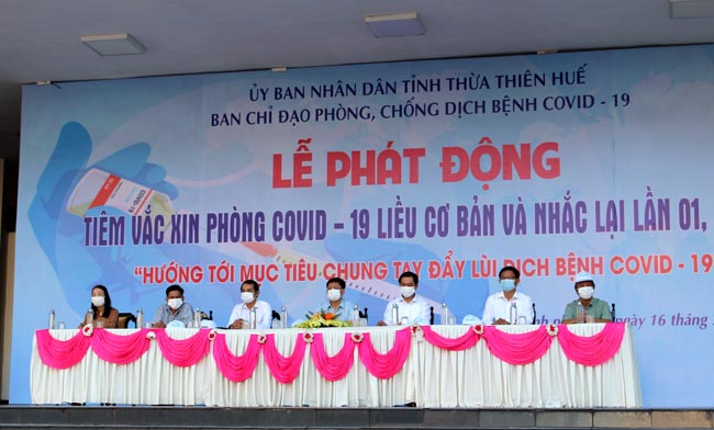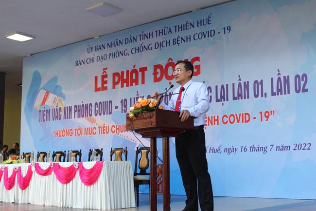 Thực hiện Công điện ngày 27/5/2022 của Bộ Y tế về việc tăng cường công tác tiêm chủng vắc xin phòng Covid-19. Ngày 12.7.2022 UBND tỉnh có công văn số 253/KH-UBND ban hành “Kế hoạch tiêm chủng vắc xin phòng Covid-19 trên địa bàn tỉnh Thừa Thiên Huế”. Sáng ngày 16.7.2022, tại Trung tâm Văn hóa - Điện ảnh Huế, thành phố Huế (Nhà hát lớn) UBND tỉnh tổ chức Lễ Phát động kêu gọi người dân và cộng đồng hãy nhận thức đúng về lợi ích của các mũi tiêm nhắc lại lần 1, lần 2 (mũi 3, mũi 4) phòng Covid-19. Tham dự lễ phát động có đồng chí Nguyễn Thanh Bình - Phó Chủ tịch UBND tỉnh - Phó ban thường trực BCĐ phòng, chống dịch bệnh Covid-19 tỉnh, PGS.TS Trần Kiêm Hảo - Giám đốc Sở Y tế, Phó Ban chỉ đạo phòng, chống dịch Covid-19 cùng với sự tham gia đông đảo của lãnh đạo UBDN các cấp, các sở, cơ quan, ban ngành/đoàn thể, lực lượng vũ trang, đoàn thanh niên, các trường học trên địa bàn thành phố Huế, nhằm đẩy mạnh tuyên truyền sâu rộng với mục đích tăng cường tỷ lệ bao phủ vắc xin các mũi nhắc lại cho các đối tượng.