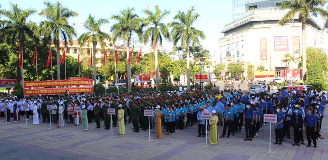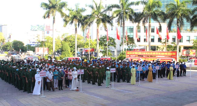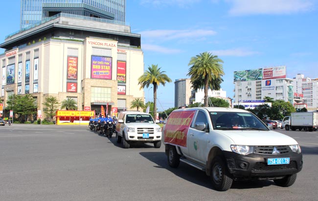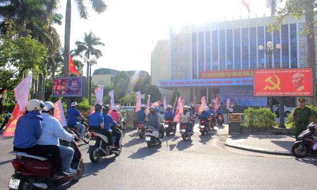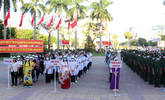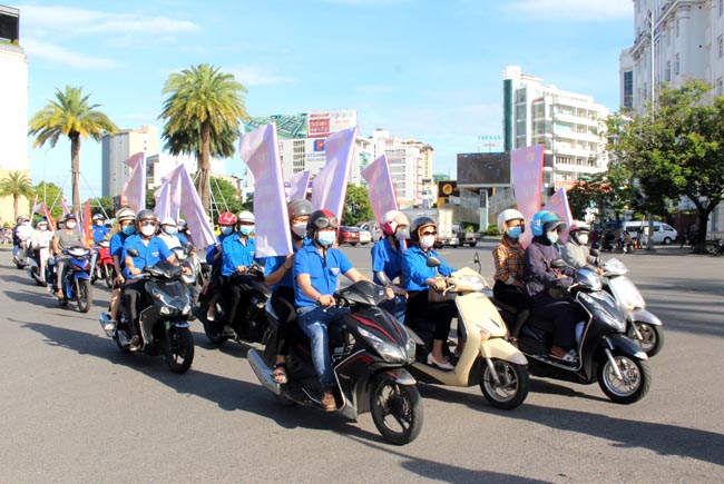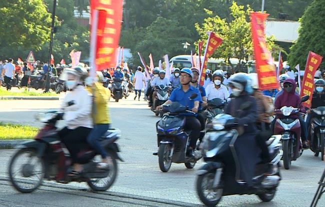 Trung tâm Y tế các huyện và lực lượng Đoàn viên thanh niên tham gia diễu hành cổ động tiêm phòng vắc xin Covid-19.