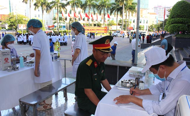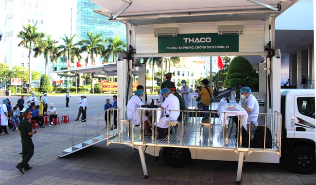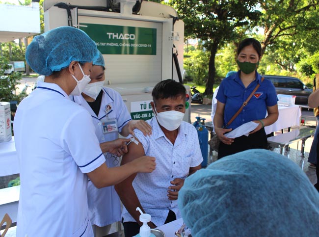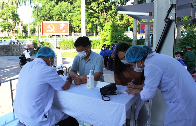 Sáng ngày 16/7, xe tiêm vắc xin lưu động tại Trung tâm Văn hóa - Điện ảnh đã tiêm cho gần 150 người đến dự Lễ phát động.