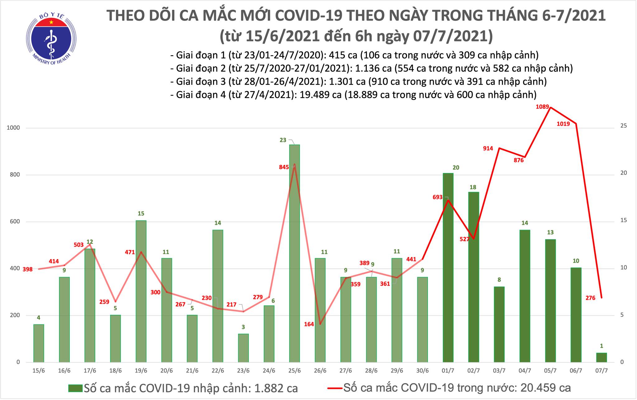 Tính từ 18h30 ngày 06/7 đến 6h ngày 07/7 có 277 ca mắc mới (BN22065-22341):