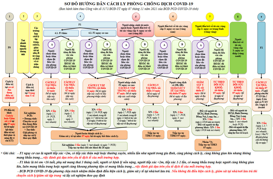 * Ghi chú: Trong tổng số 1.345 F0, trong đó có 07 F0 từ tỉnh/thành phố khác chuyển đến, 162 F0 cộng đồng, 62 F0 trong khu vực phong toả, 01 ca trong thời gian cách ly tại nhà, 97 F0 trong thời gian GSYT tại nhà sau cách ly tập trung, 30 F0 là người nhà của người GSYT sau cách ly tập trung, 38 F0 trong thời gian GSYT tại nhà từ vùng dịch về, 02 F0 là người nhà của người GSYT vùng dịch về, 15 F0 phát hiện tại Chốt kiểm soát y tế và 931 F0 phát hiện tại khu cách ly (trong đó 155 F0 liên quan đến các ca bệnh tại cộng động, 52 F0 liên quan đến các ca giám sát y tế, 717 F0 từ vùng dịch trở về, 06 F0 từ Lào về, 01 F0 là sinh viên tăng cường PCD từ Bình Dương về).