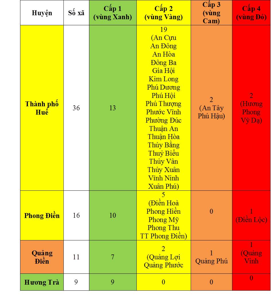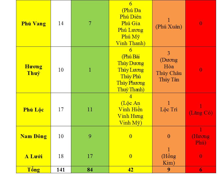 + Tp Huế: 06 (An Cựu: 4, An Hoà: 1, Vĩnh Ninh: 1)
