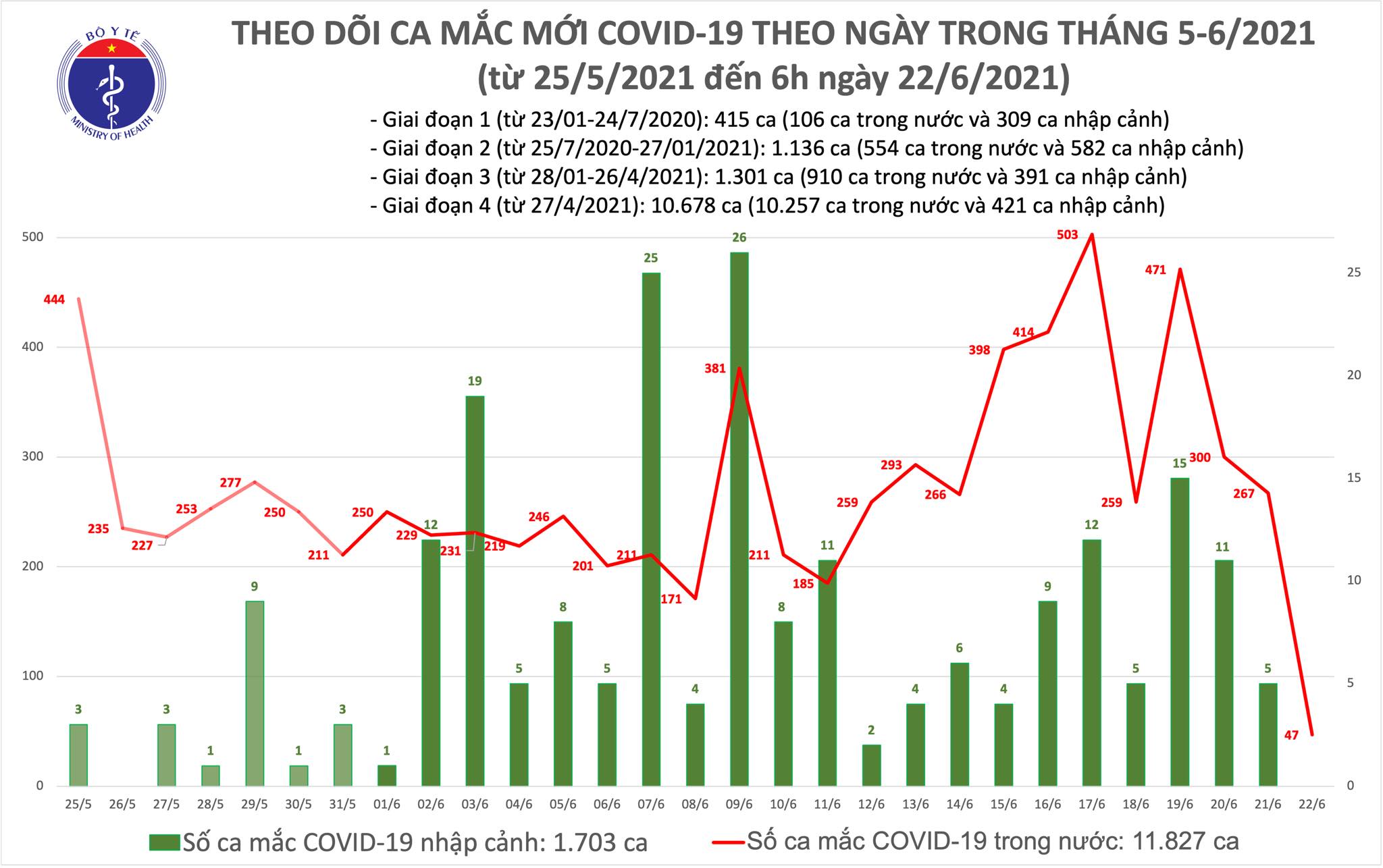 Tính từ 18h ngày 21/6 đến 6h ngày 22/6 có 47 ca mắc mới (BN13484-13530):