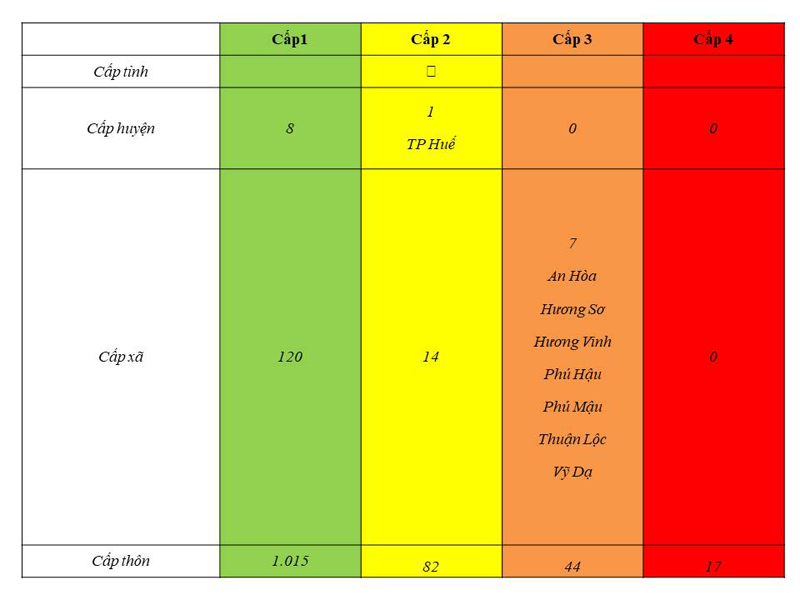 b) . Tại tỉnh Thừa Thiên Huế: