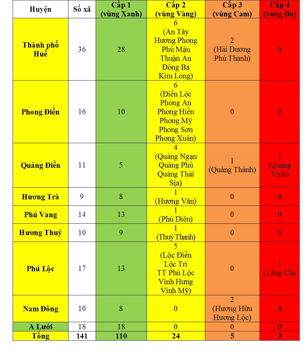 - Cấp tỉnh: Tỉnh Thừa Thiên Huế đang ở mức cấp 2 (vùng vàng).
