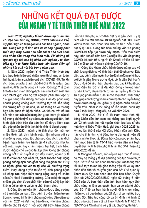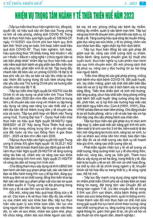 Bản tin Y tế Thừa Thiên Huế tháng 03.2023