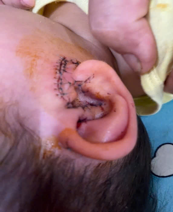 Theo người nhà cho biết chiều ngày 24/09/2025 bé đi ra đường chơi thì bị chó dữ nhà hàng xóm xổng xích lao ra cắn, sau đó bé được người nhà đưa vào cấp cứu tại Bệnh viện Trung ương Huế, do vết thương khá sâu và phức tạp nên bé đã được phẫu thuật cắt lọc làm sạch và khâu vết thương.