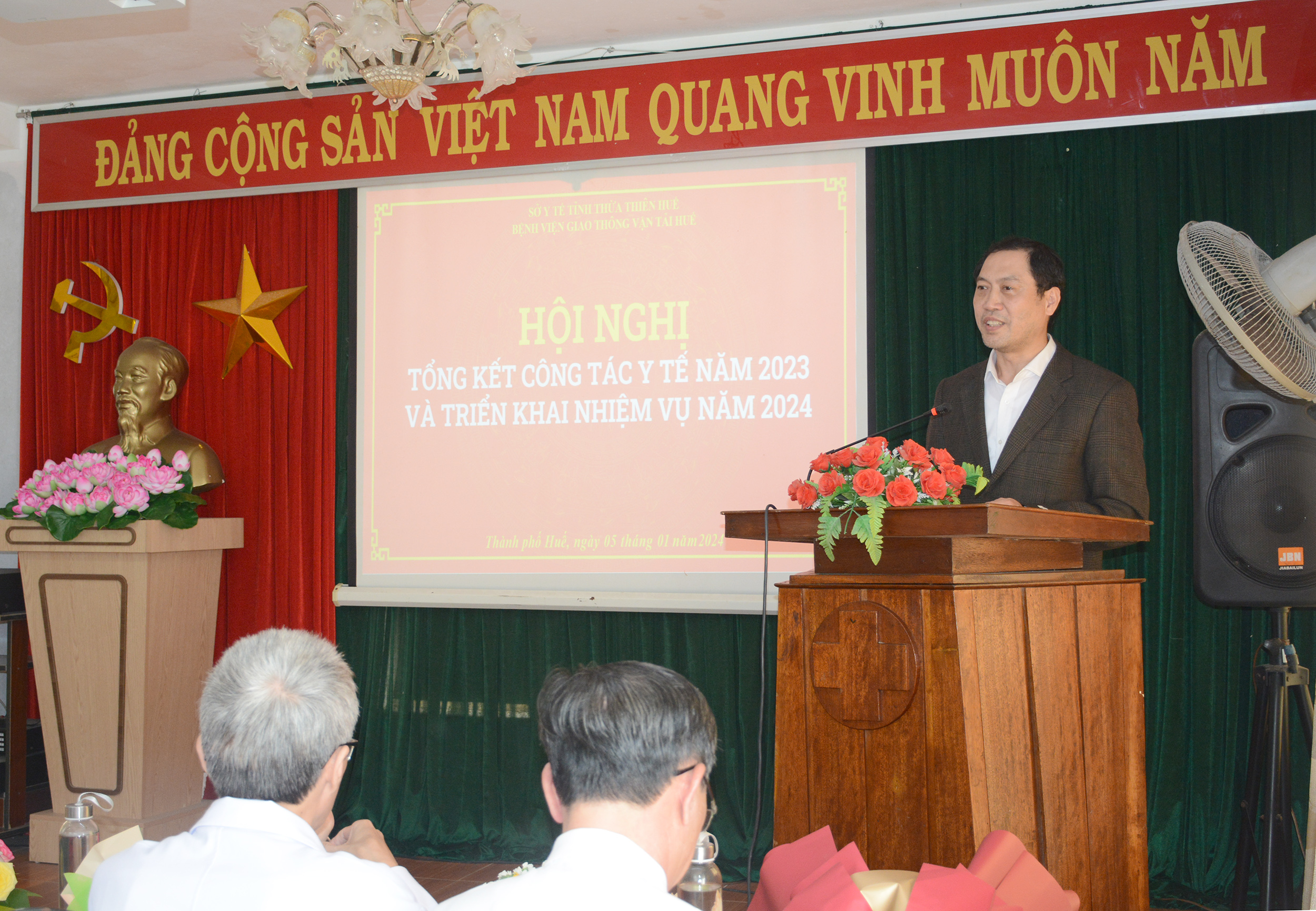 Chiều ngày 05/01, Bệnh viện Giao thông vận tải Huế (GTVT) tổ chức “Hội nghị Tổng kết công tác Y tế năm 2023 và triển khai nhiệm năm 2024”. PGS.TS Trần Kiêm Hảo - Giám đốc Sở Y tế dự và chủ trì hội nghị. Tham dự hội nghị có đại diện lãnh đạo các Phòng của Sở Y tế và Cấp ủy, Ban Giám đốc, lãnh đạo các tổ chức đoàn thể, các khoa/phòng Bệnh viện GTVT Huế.