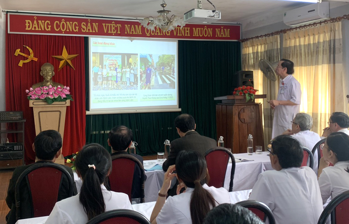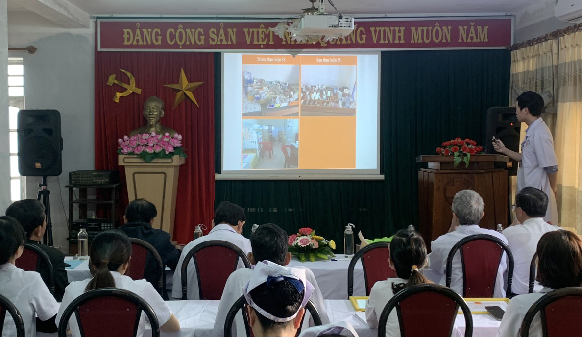 Các khoa/phòng tham luận về Hoạt động KCB, Cải cách hành chính, Kỹ năng ứng xử, Xây dựng BV Xanh - Sạch - Đẹp, Ứng dụng mô hình 5S trong bệnh viện (Sắp xếp - Sàng lọc - Sạch sẽ - Săn sóc - Sẵn sàng)
