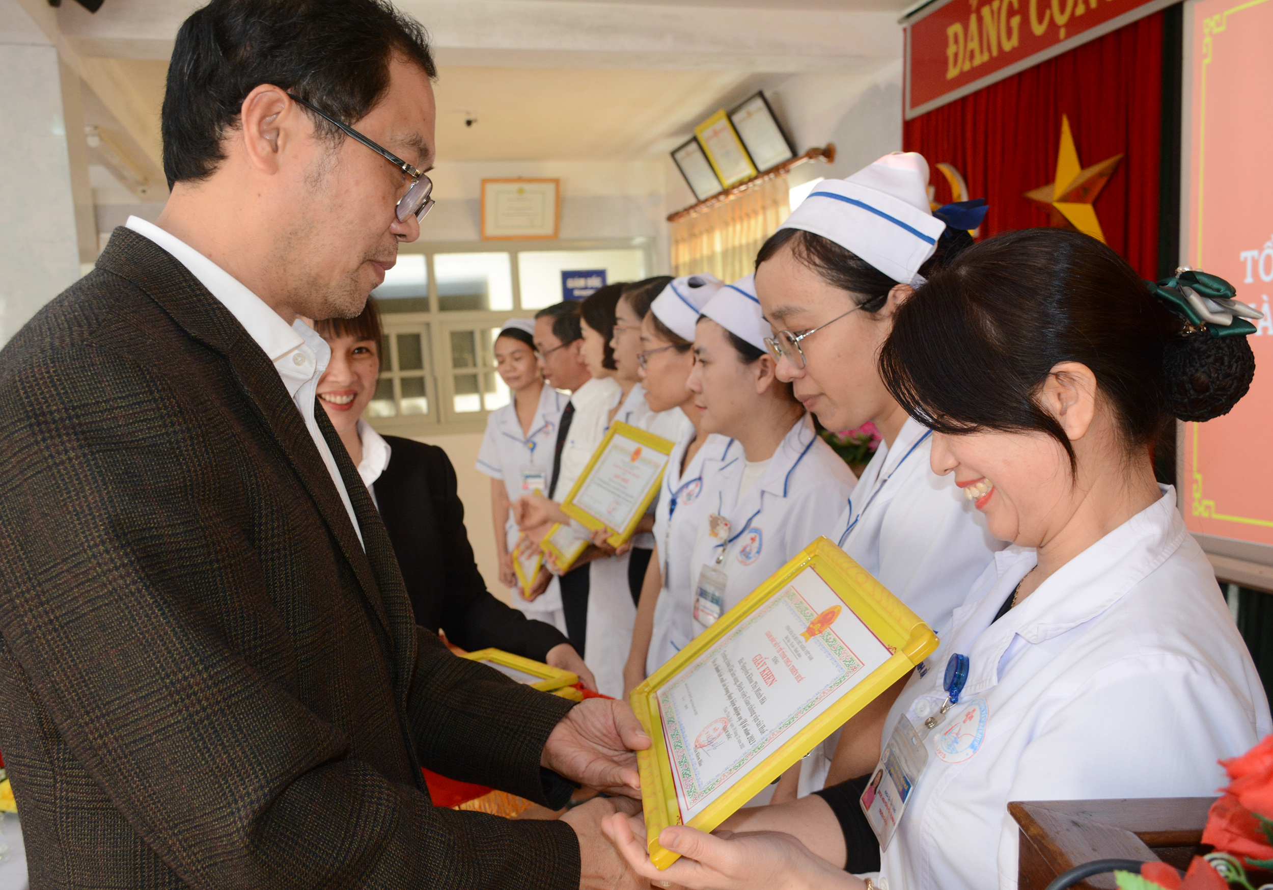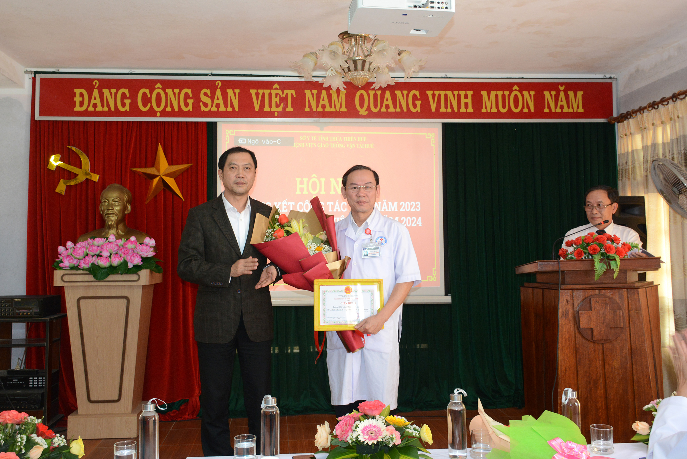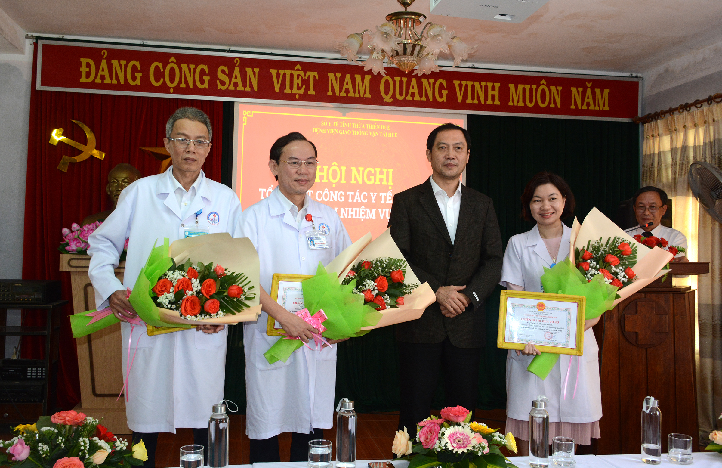 Tại hội nghị tổng kết, Giám đốc Sở Y tế Trần Kiêm Hảo đã trao tặng Giấy Khen và hoa chúc mừng cho tập thể Bệnh viện GTVT, 10 cá nhân có thành tích trong năm, công nhận CSTĐ cấp cơ sở cho 03 viên chức và đề nghị Chủ tịch UBND tỉnh tặng Bằng Khen cho 1 cá nhân.