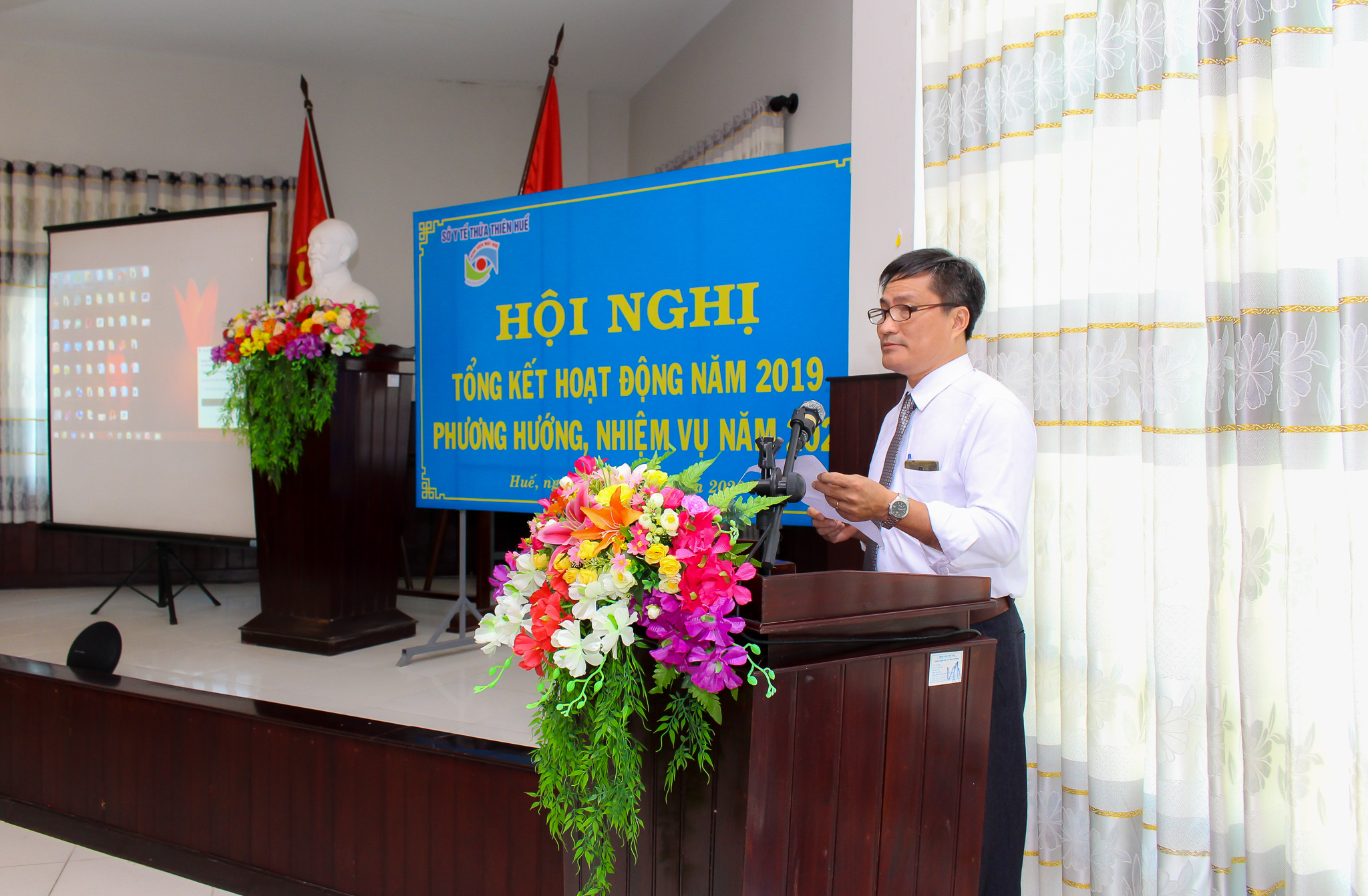 BSCKII Phạm Minh Trường - Giám đốc Bệnh viện mắt Huế báo cáo nội dung hoạt động năm 2019, triển khai nhiệm vụ năm 2020