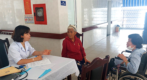 Đoàn Bác sĩ của bệnh viện PHCN tiến hành khám lượng giá