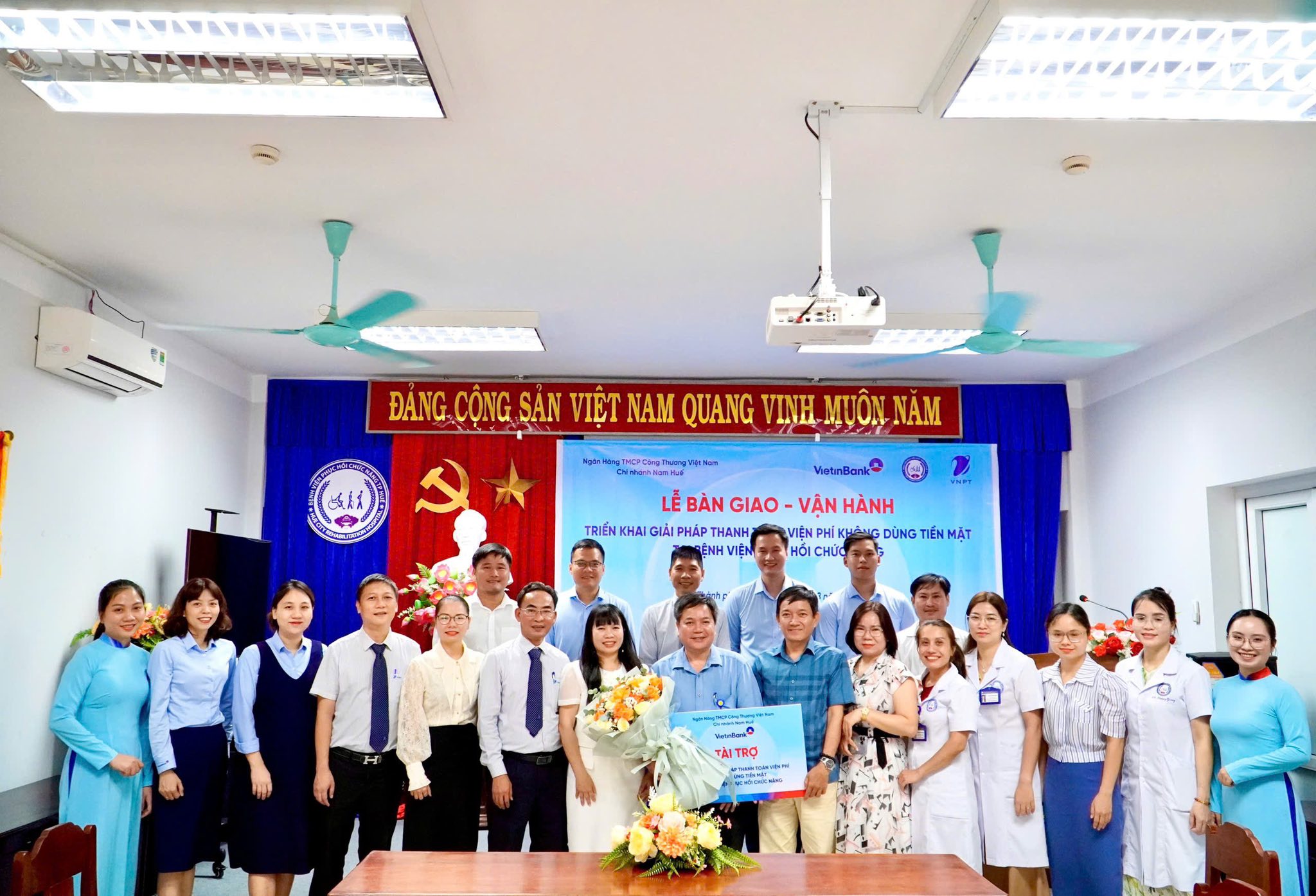 Ngày 6/8/2025, Bệnh viện Phục hồi chức năng phối hợp với Ngân hàng VietinBank - Chi nhánh Nam Huế và Tập đoàn VNPT tổ chức Lễ bàn giao và vận hành giải pháp thanh toán không dùng tiền mặt. Giải pháp sử dụng hình thức quét mã QR động, do VietinBank Chi nhánh Nam Huế tài trợ và triển khai phối hợp cùng VNPT Huế.