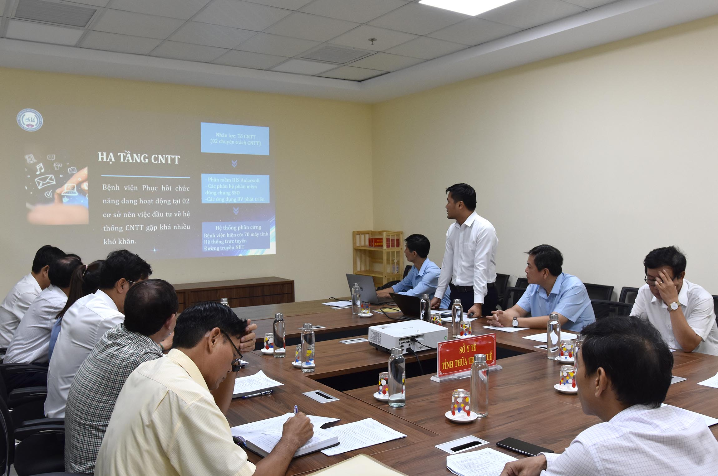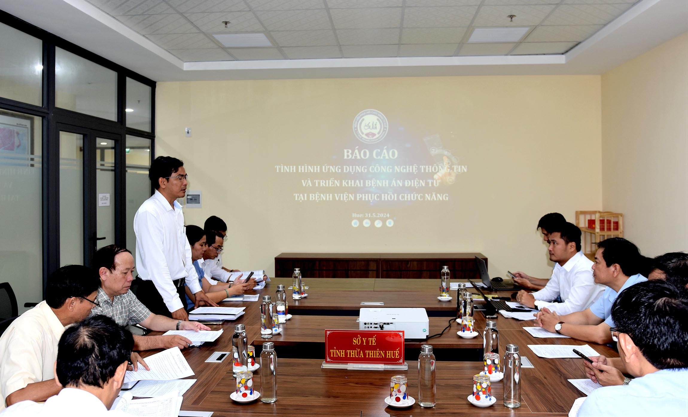 Ngày 31/5/2024, Sở Y tế tổ chức cuộc họp triển khai mô hình Bệnh án điện tử tại Bệnh viện Phục hồi chức năng Huế. Tham dự cuộc họp có Ban Giám đốc Sở, trưởng các Phòng Nghiệp vụ Y, Nghiệp vụ Dược, Kế hoạch - Tài chính, Tổ chức cán bộ, Văn phòng Sở Y tế, Lãnh đạo Bệnh viện PHCN Huế cùng các bộ phận liên quan và đơn vị tư vấn Công ty phần mền Âu Lạc.