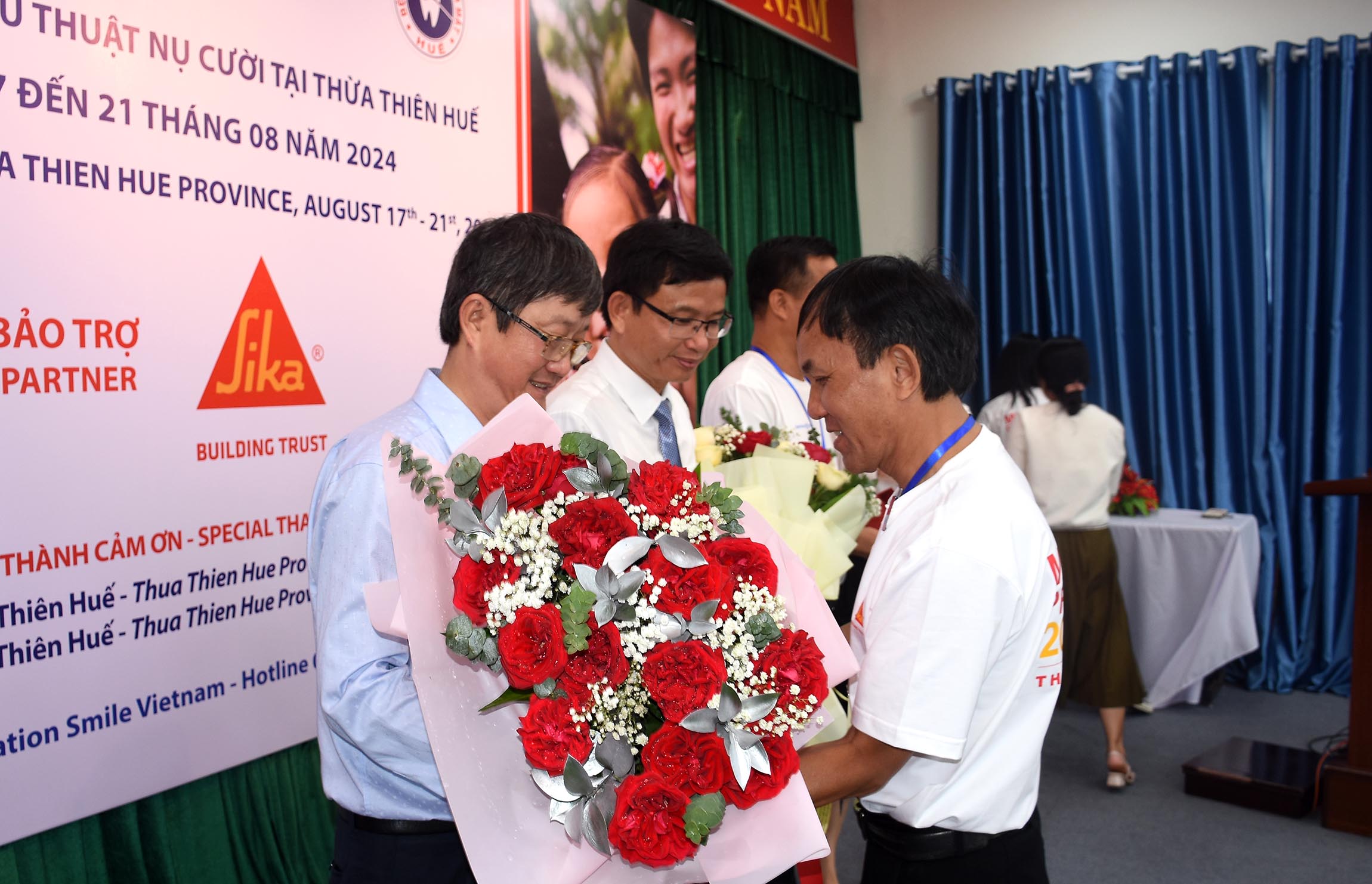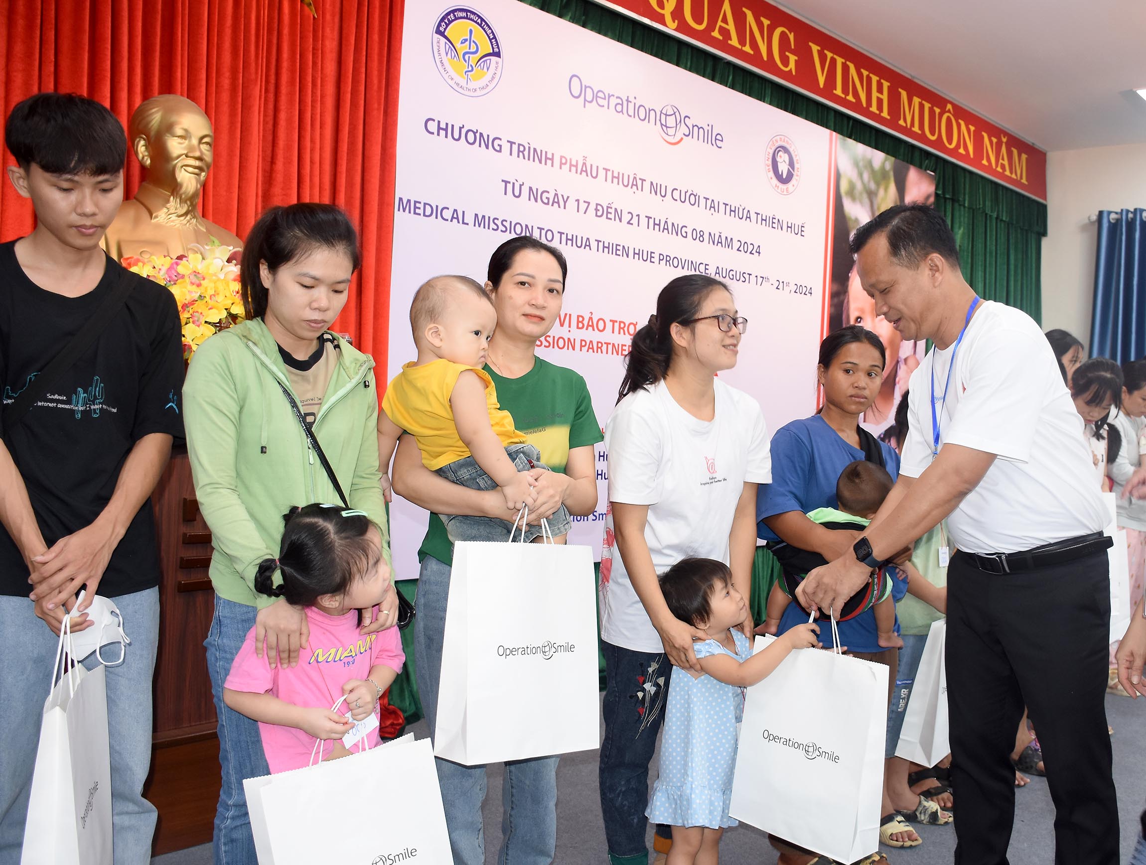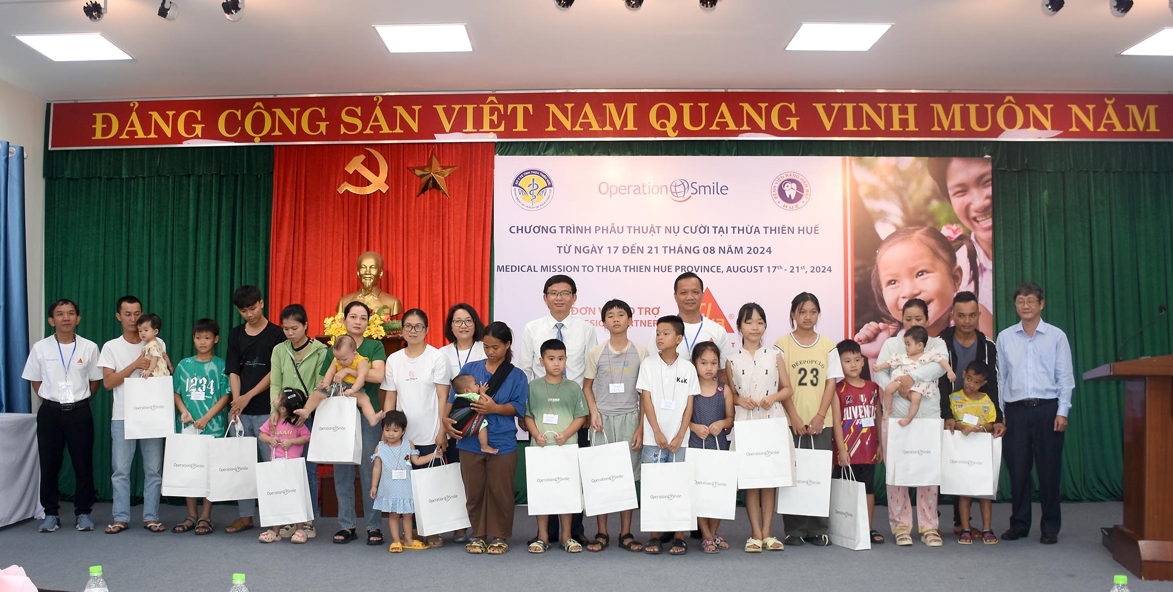 Sáng ngày 17/8, Bệnh viện Răng Hàm Mặt Huế phối hợp với Tổ chức Operation Smile Việt Nam khai mạc “Chương trình phẫu thuật nụ cười tại Thừa Thiên Huế”, Ban Giám đốc sở Y tế Thừa Thiên Huế, Tổ chức Operation Smile Việt Nam, Nhà tài trợ SIKA, lãnh đạo BV Răng Hàm Mặt - Huế, người nhà và các trẻ dị tật từ các tỉnh Miền Trung - Tây Nguyên cùng tham dự.