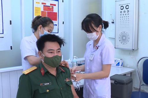 Chiều cùng ngày, Trung tâm Kiểm soát bệnh tật tỉnh đã tiến hành tiêm chủng vắc xin phòng Covid-19 cho hơn 50 cán bộ, chiến sĩ quân đội. Sau tiêm các cán bộ, chiến sĩ sẽ được theo dõi ít nhất 1 tiếng tại điểm tiêm. Sau đó được cán bộ y tế hướng dẫn theo dõi sức khỏe tại nhà trong vòng 24 giờ và tiếp tục theo dõi ít nhất 7 ngày sau khi tiêm.