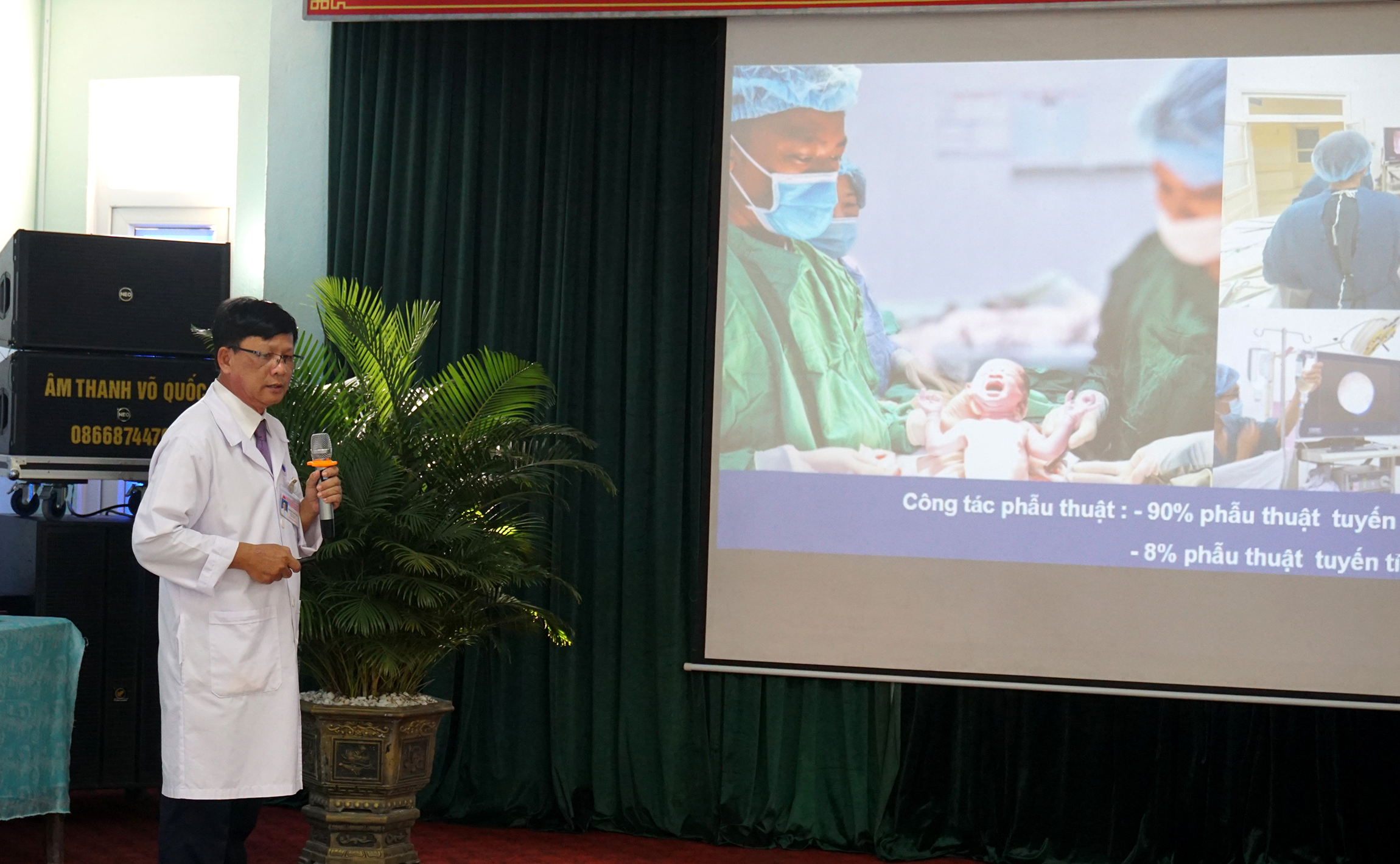 BSCKII Trương Như Sơn - Giám đốc TTYT huyện Phú Vang báo cáo tình hình hoạt động của đơn vị.