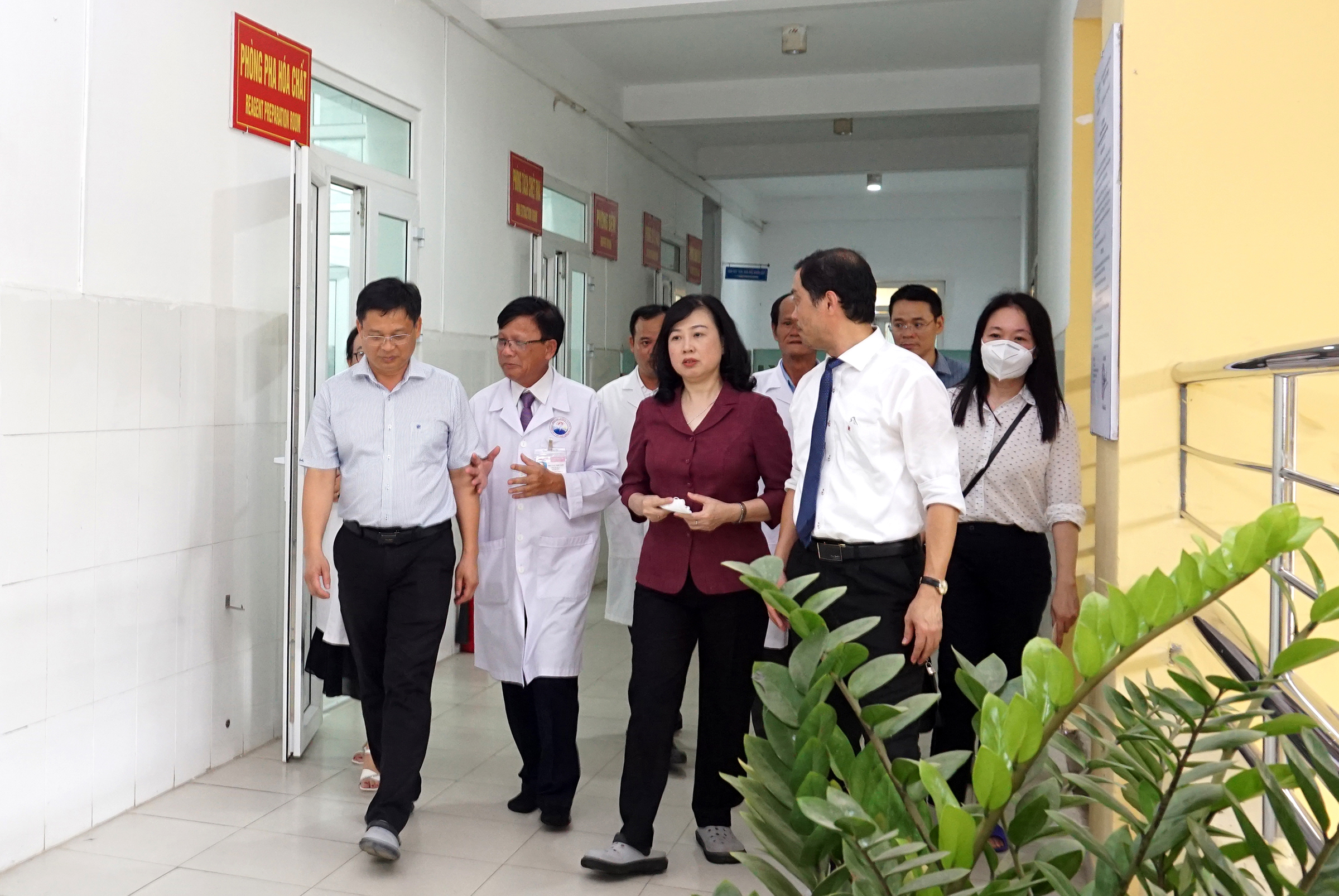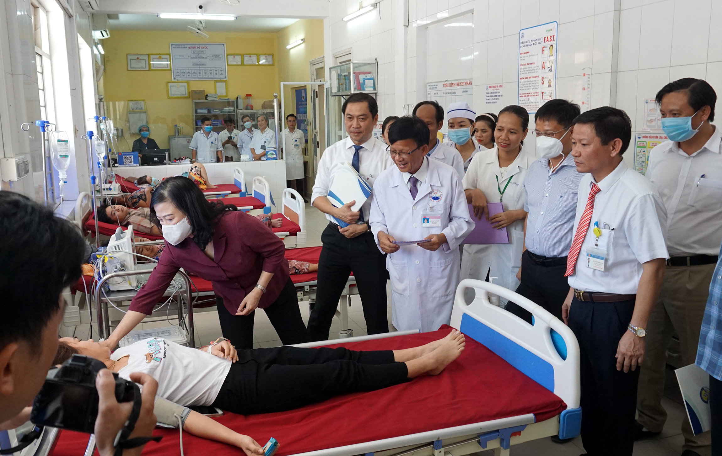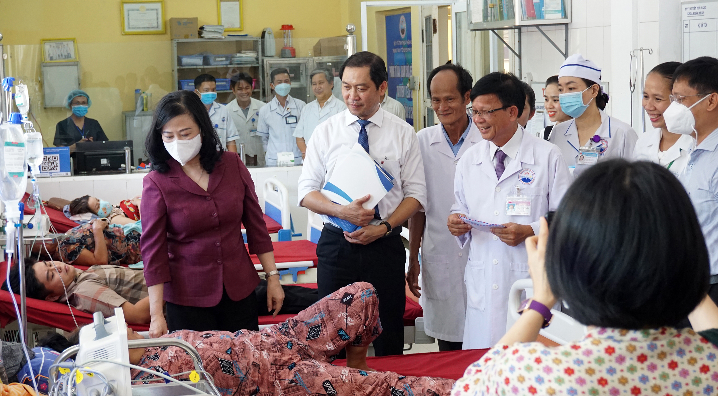 Bộ trưởng Đào Hồng Lan thăm hỏi, động viên tặng quà cho một số bệnh nhân đang điều trị khoa Cấp cứu, gặp gỡ trò chuyện người nhà bệnh nhân và thăm một số khoa cận lâm sàng.