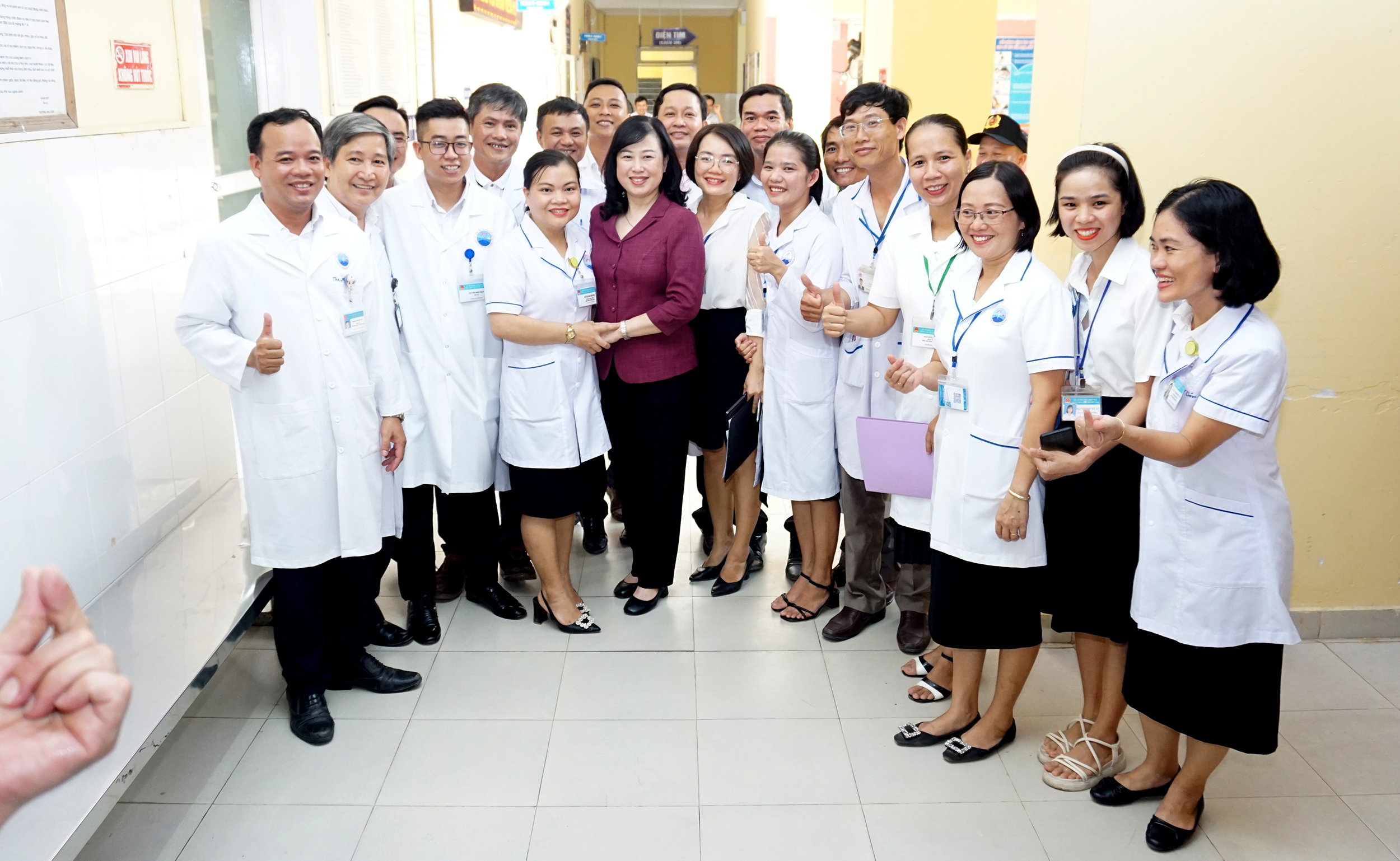 Bộ trưởng Bộ Y tế Đào Hồng Lan động viên, khen ngợi và phát biểu chỉ đạo, định hướng công tác Y tế với cán bộ/nhân viên TTYT Phú Vang.