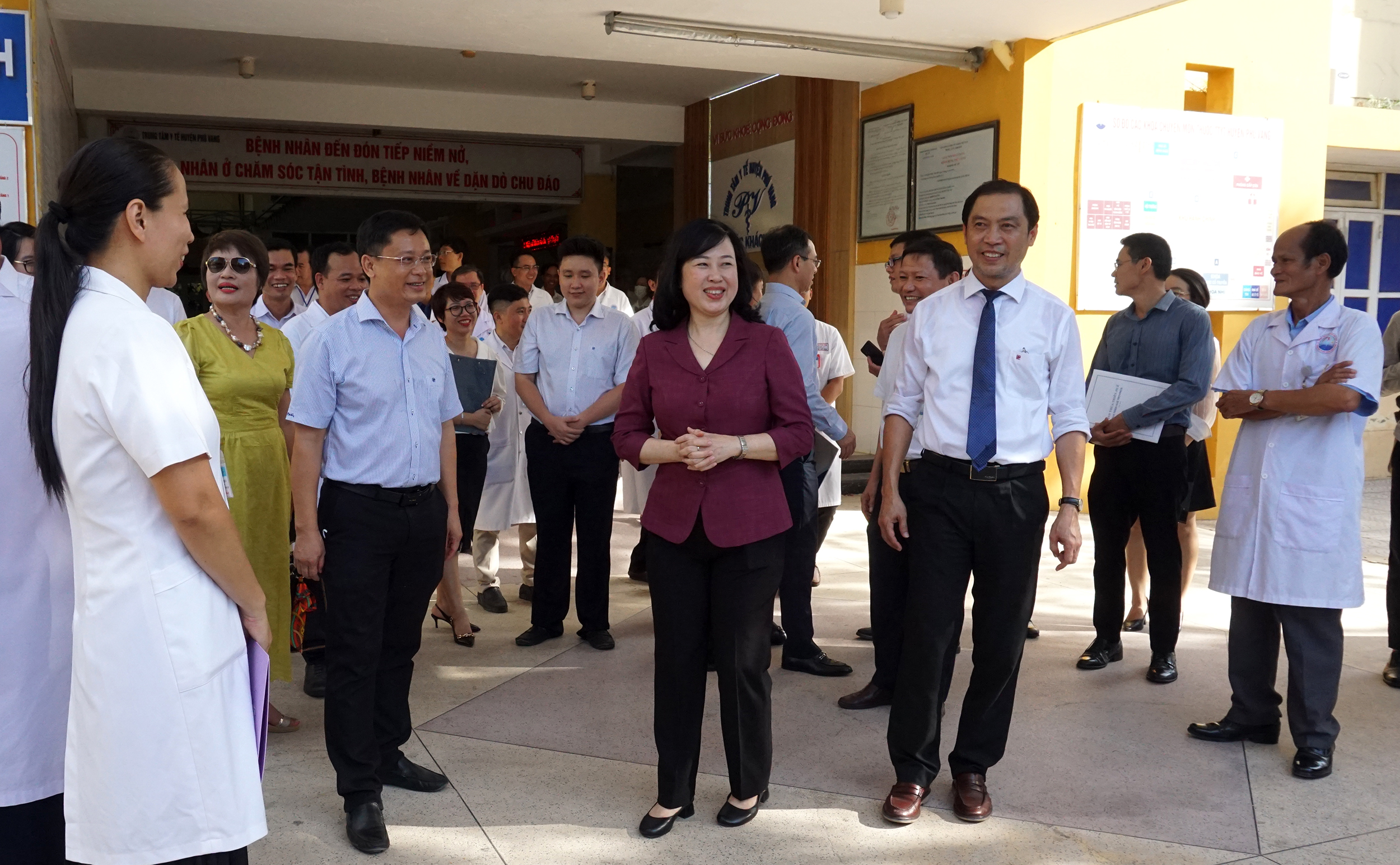 Chiều ngày 15/7/2023, đồng chí Đào Hồng Lan, Ủy viên Trung ương Đảng, Bộ trưởng Bộ Y tế cùng lãnh đạo các Vụ/Viện trực thuộc Bộ Y tế đã đến thăm và làm việc với Trung tâm Y tế huyện Phú Vang. Tiếp Đoàn công tác có ông Nguyễn Thanh Bình UVTVTU, Phó Chủ tịch Thường trực UBND tỉnh; PGS.TS Trần Kiêm Hảo - Giám đốc sở Y tế; GS.TS Phạm Như Hiệp - Giám đốc BV Đa khoa Trung ương Huế; đồng chí Trần Gia Công - Tỉnh ủy viên - Bí thư huyện ủy Phú Vang; BSCKII Trương Như Sơn - Huyện Ủy viên - Giám đốc cùng các Phó Giám đốc, lãnh đạo các Khoa/Phòng và đông đảo nhân viên y tế Trung tâm Y tế huyện Phú Vang phấn khởi đón tiếp Đoàn.