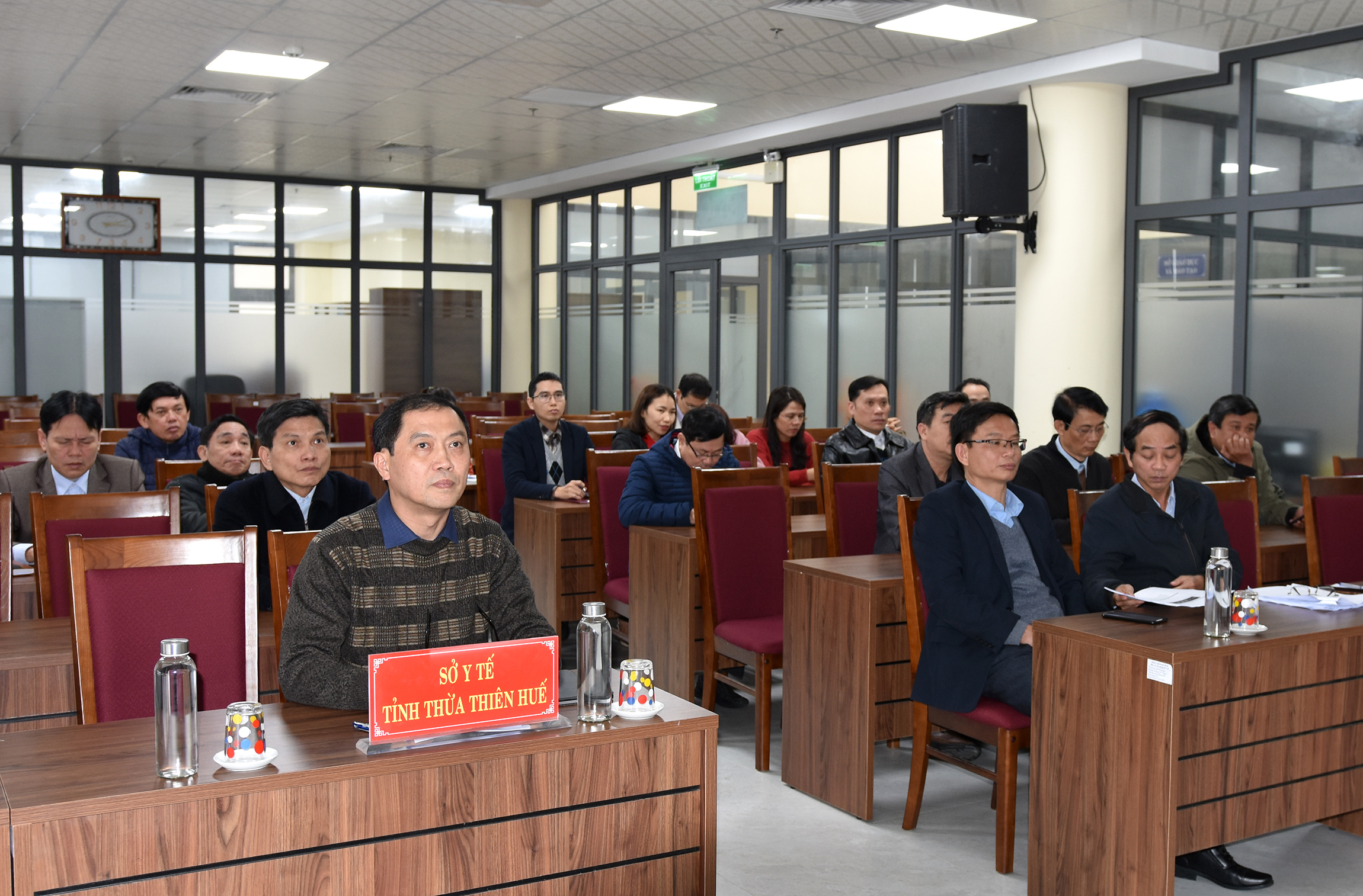 PGS.TS TrầnKiêm Hảo Giám đốc Sở Y tế - Chủ trì tại điểm cầu Sở Y tế Thừa Thiên Huế, cùng tham dự có Ban Giám đốc lãnh đạo các Phòng của Sở Y tế, Bảo hiểm xã hội tỉnh, TTYT huyện/thị xã thành phố, các bệnh viện trong và ngoài công lập trên địa bàn tỉnh.