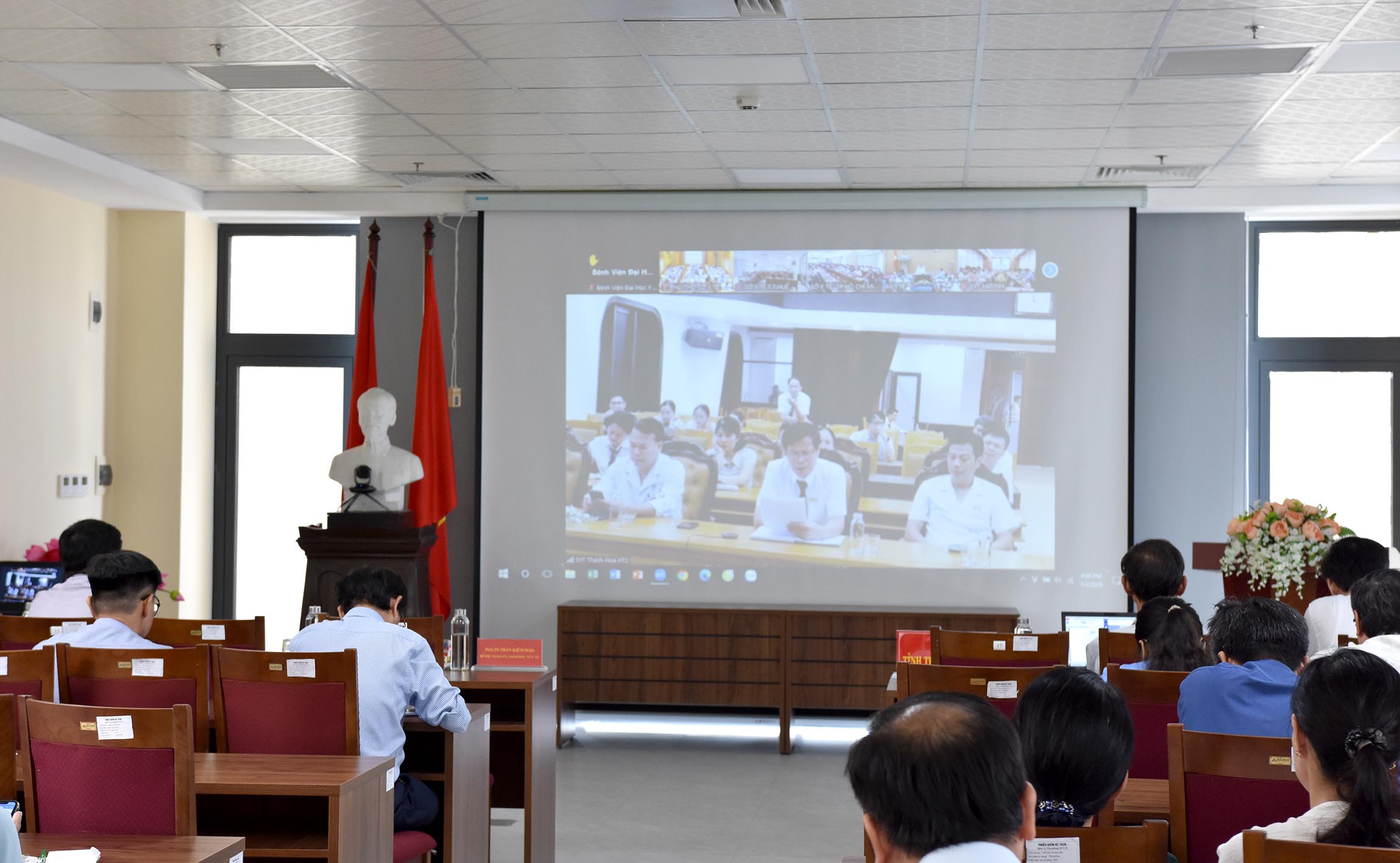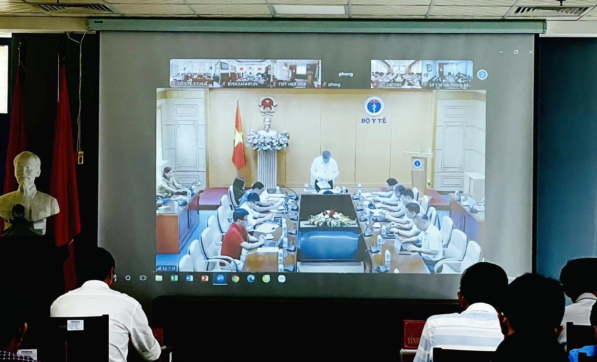Quang cảnh hội nghị tại đầu cầu Sở Y tế Thừa Thiên Huế.