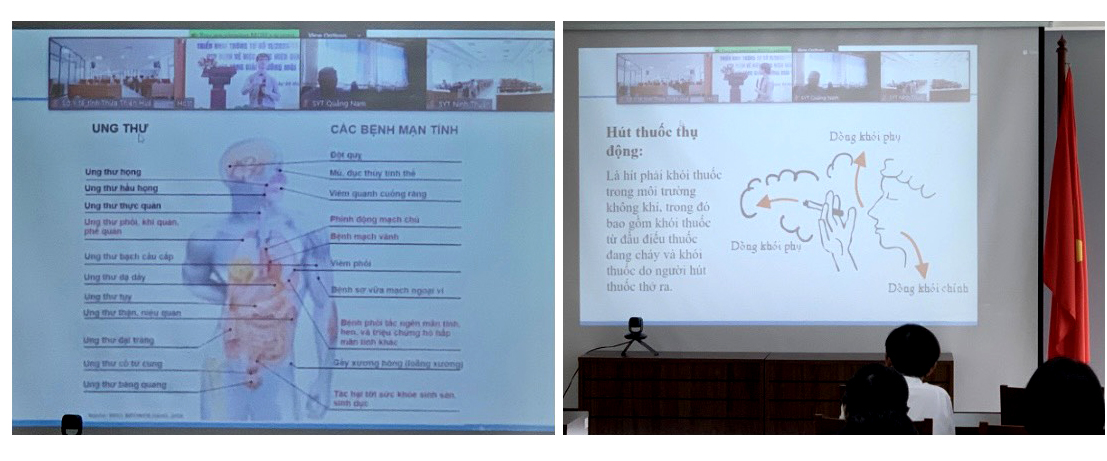 Sáng ngày 29/5/2023, Bộ Y tế tổ chức Hội thảo trực tuyến “Triển khai Thông tư số 11/2023/TT-BYT quy định về việc thực hiện địa điểm cấm hút thuốc lá và xét tặng Giải thưởng Môi trường không thuốc lá”. GS Trần Văn Thuấn - Thứ trưởng Bộ Y tế chủ trì tại đầu cầu Hà Nội, hội thảo được trực tuyến đến 64 tỉnh/thành trên toàn quốc. Tại điểm cầu sở Y tế Thừa Thiên Huế có sự tham gia của Ban Giám đốc, lãnh đạo/chuyên viên Văn phòng, phòng Nghiệp vụ Y, phòng Thanh tra sở Y tế; lãnh đạo và khoa Truyền thông giáo dục sức khỏe - Trung tâm Kiểm soát bệnh tật tỉnh; cán bộ đầu mối truyền thông y tế/phụ trách hoạt động phòng, chống tác hại thuốc lá tại các Bệnh viện, đơn vị trực thuộc Sở; lãnh đạo và cán bộ phụ trách công tác Truyền thông giáo dục sức khỏe của TTYT các huyện/thị xã/thành phố.