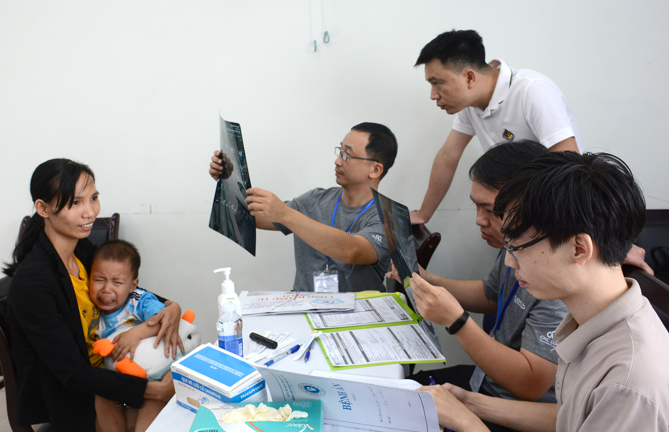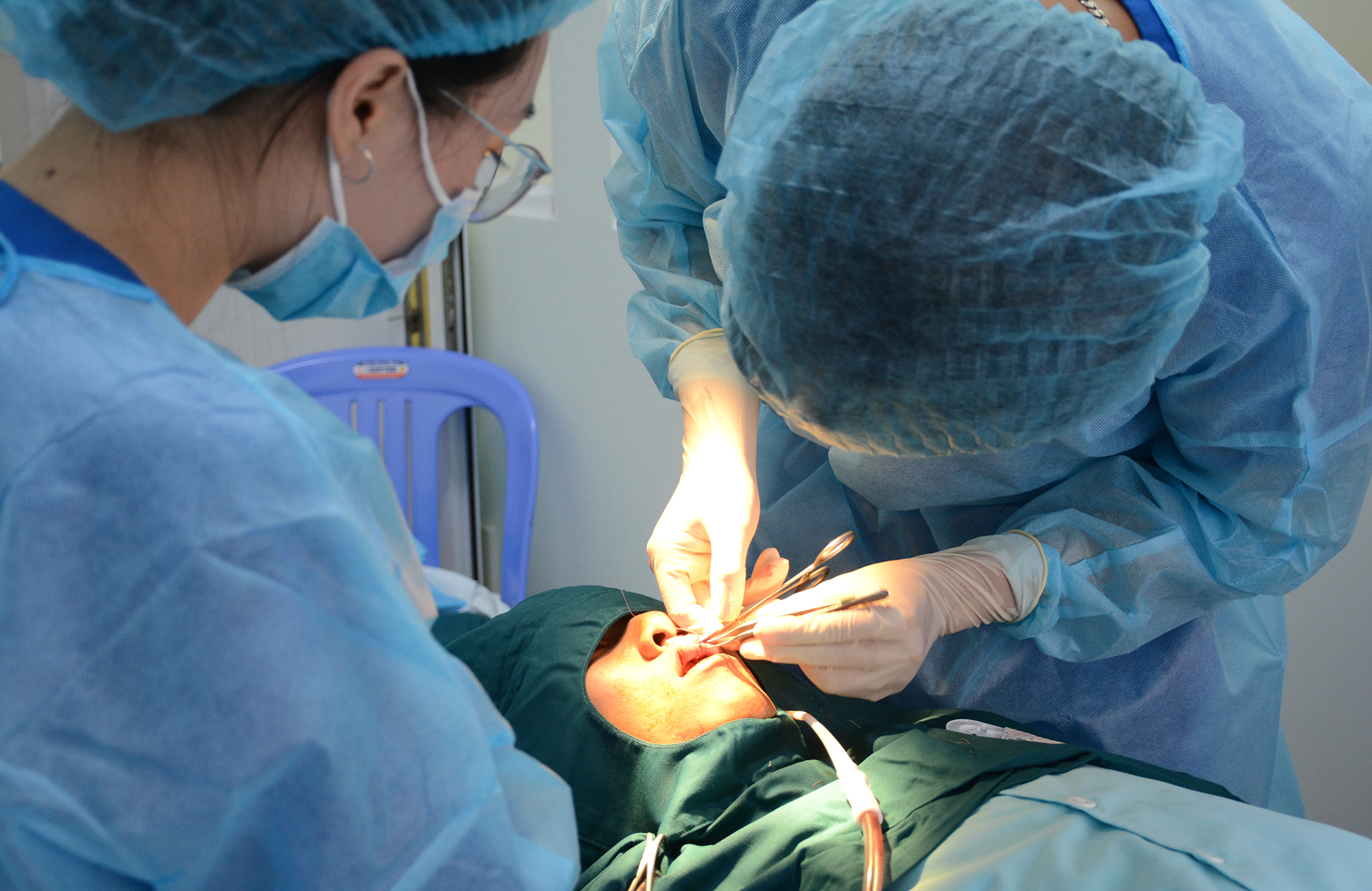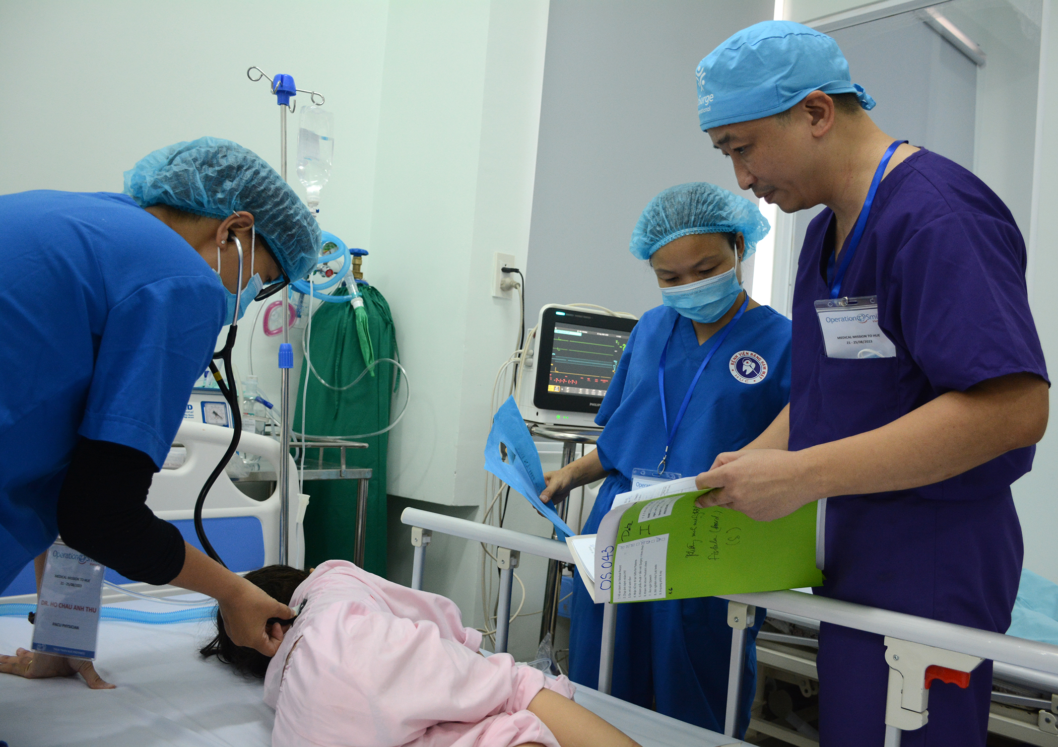 TS.BS Lê Thừa Trung Hậu - Chuyên viên phẩu thuật thẩm mỹ tỉnh Thừa Thiên Huế cùng các các đồng nghiệp khám phân loại, tham gia phẩu thuật và theo dõi theo dỏi bệnh nhi hậu phẩu.