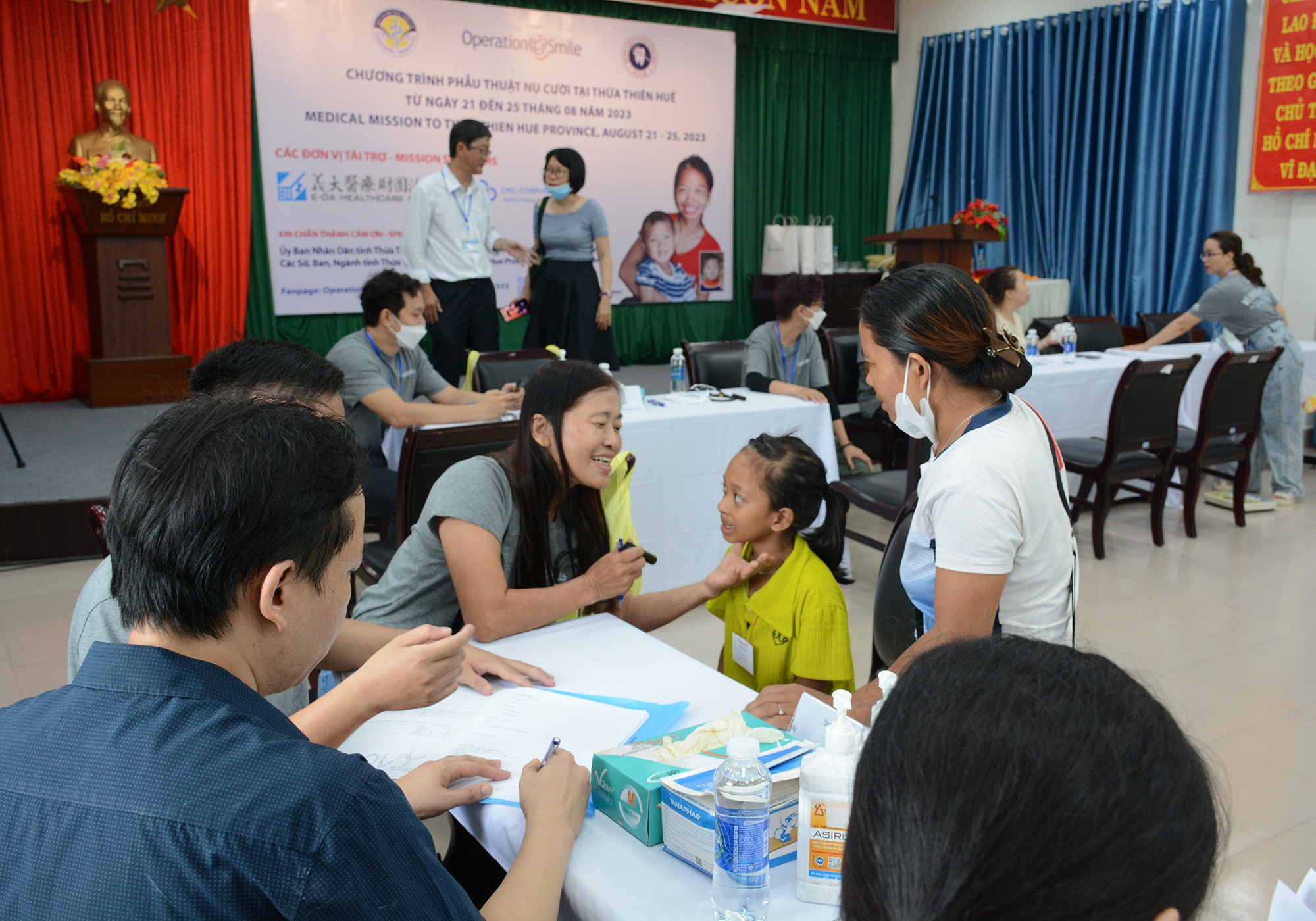 Đợt này, Đoàn phẩu thuật Operation Smile Việt Nam phối hợp cùng BV Răng Hàm Mặt Huế và đội ngũ các bác sĩ/điều dưỡng/kỹ thuật viên/tình nguyện viên đến từ đối tác của Operation Smile tại Đài Loan và các BV Hữu nghị Việt - Đức, BV Quốc tế Việt - Pháp, BVTW Quân đội 108, BV Hữu nghị Việt Nam - Cu Ba, BV Chợ Rẫy, BV Quận 11, BV Răng Hàm Mặt Tp. Hồ Chí Minh, BV chuyên khoa RHM Mỹ Thiện… Ngay sau lễ khai mạc, Đoàn đã nhanh chóng triển khai khám sàng lọc/phân loại và phân công các ca/kíp triển khai phẩu thuật cho các bệnh nhi đủ điều kiện can thiệp do dị tật môi, vòm, sụp mí, thừa ngón chân, ngón tay và sẹo co rút di chứng… đến từ các tỉnh Đắk Lắk, Kon Tum, Khánh Hòa, Phú Yên, Bình Định, Quảng Ngãi, Quảng Nam, Đà Nẵng, Quảng Trị, Quảng Bình… mà đa phần là các gia đình có hoàn cảnh khó khăn và một số đồng bào dân tộc thiểu số…