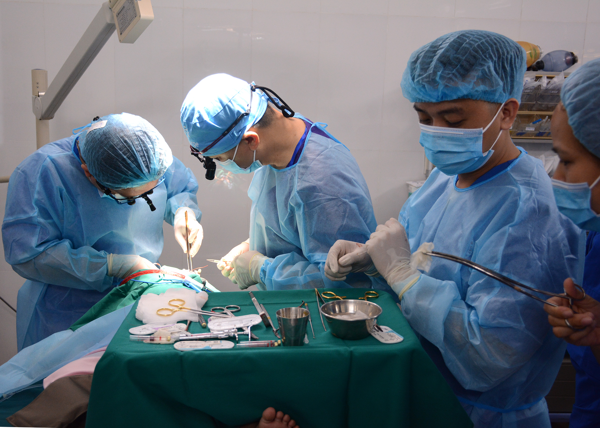 Các kíp mổ gồm các chuyên gia Y tế đến từ Bệnh viện Eda - Đài Loan và một số bệnh viện công lập, quân đội và ngoài công lập từ 3 Miền Bắc, Trung, Nam thay nhau làm việc thông tầm sử dụng hết công suất các bàn mổ để đảm bảo đúng kế hoạch và tiến độ đợt phẩu thuật.