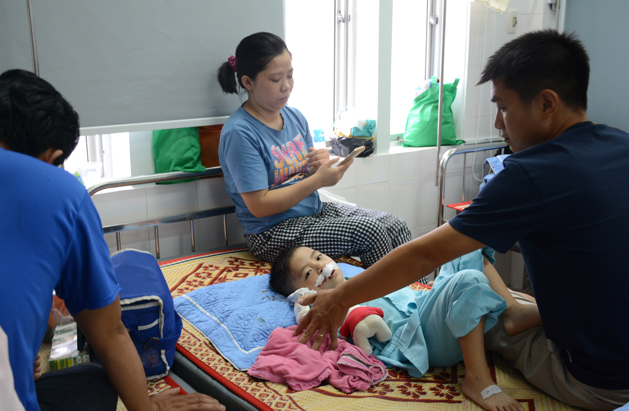 Chị Hồ Thị Ta Đan - Dân tộc Vân Kiều đến từ xã Húc, huyện Hướng Hóa, tỉnh Quảng Trị, mẹ của trẻ Hồ Văn Duân 8 tuổi cho biết: Cách đây 5 năm, khi đó con mình 3 tuổi đã đến đây vá hở môi. Nay được thông báo, mình đưa con đến Huế để các bác sĩ mổ trong vòm họng. Mình biết ơn bệnh viện và các bác sĩ lắm!