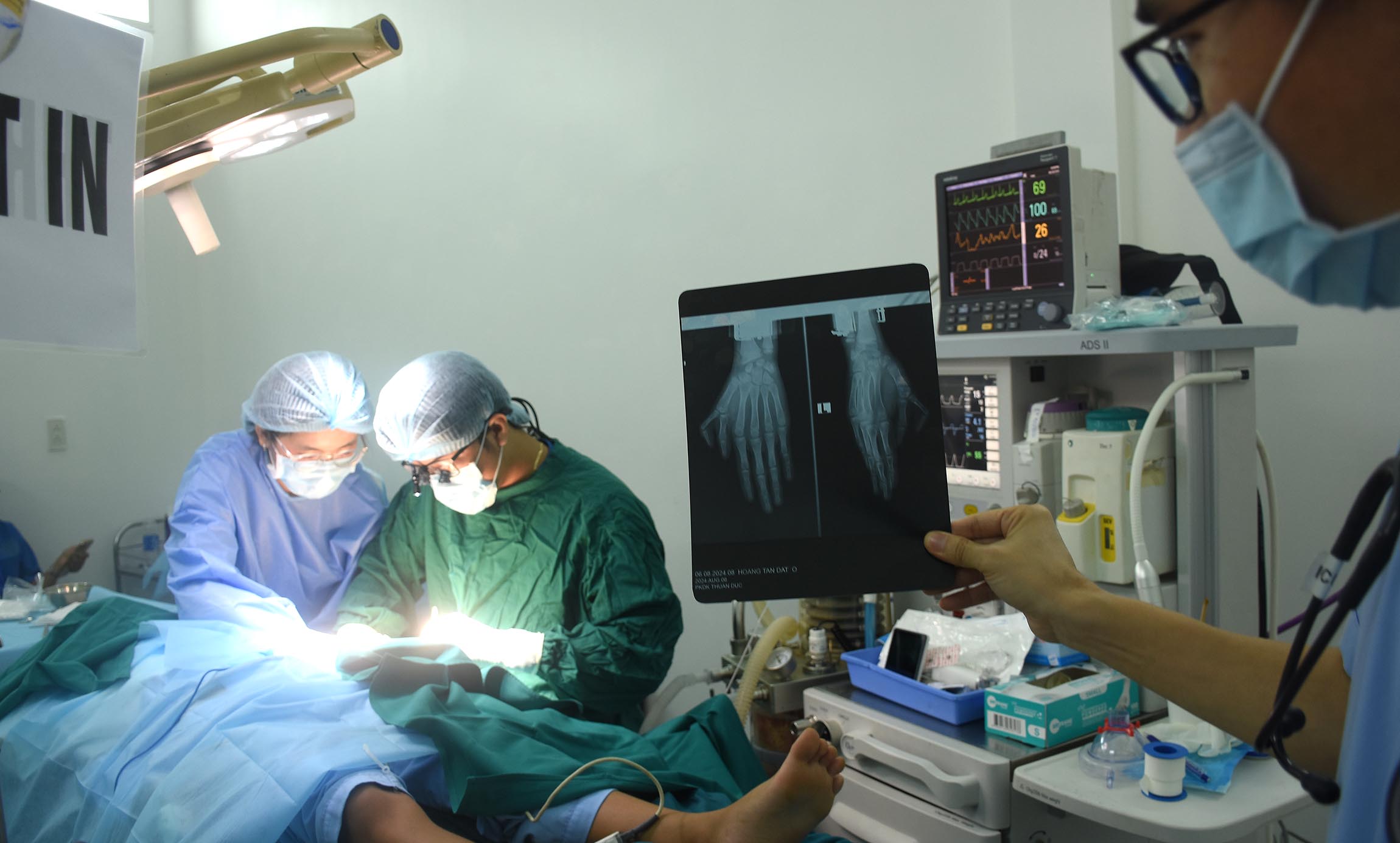Kíp mổ đang thực hiện ca phẩu thuật thừa ngón tay.