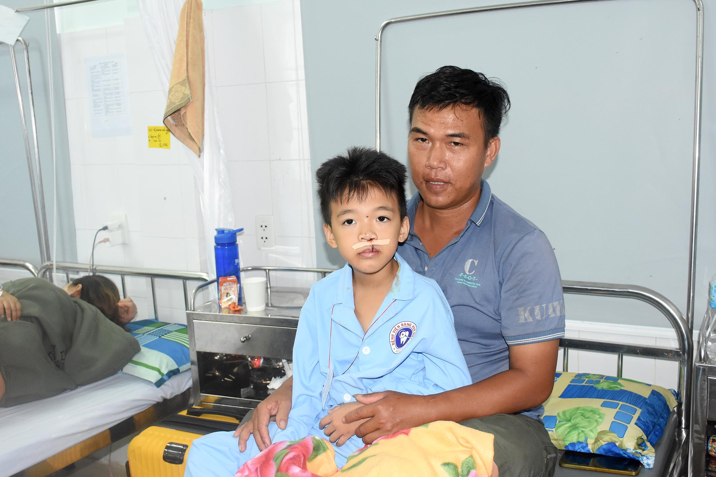 Anh Ngô Cừ (Thị trấn Phú Lộc - Huyện Phú Lộc - Thừa Thiên Huế) có con là Ngô Anh Tùng 8 tuổi phẩu thuật tạo hình môi và cánh mũi tâm sự: “Cả đời theo nghề biển có biết chi mô, tuần trước trạm Y tế có thông báo đưa cháu lên BV Răng Hàm Mặt Huế để khâu vá môi. Tôi đưa cháu lên đây 2 ngày rồi, khi mới lên được các bác sỹ thăm hỏi và khám kỹ lắm, sáng nay nó được đưa vào phòng mổ khoảng chừng một tiếng. Khi xong các bác sĩ đưa cháu ra cho gia đình, ở môi trên có dán miếng băng để che vết mổ thấy nó vẫn khỏe, không la khóc, mặt mày tươi tỉnh, vợ chồng em thật vui mừng và hạnh phúc…”