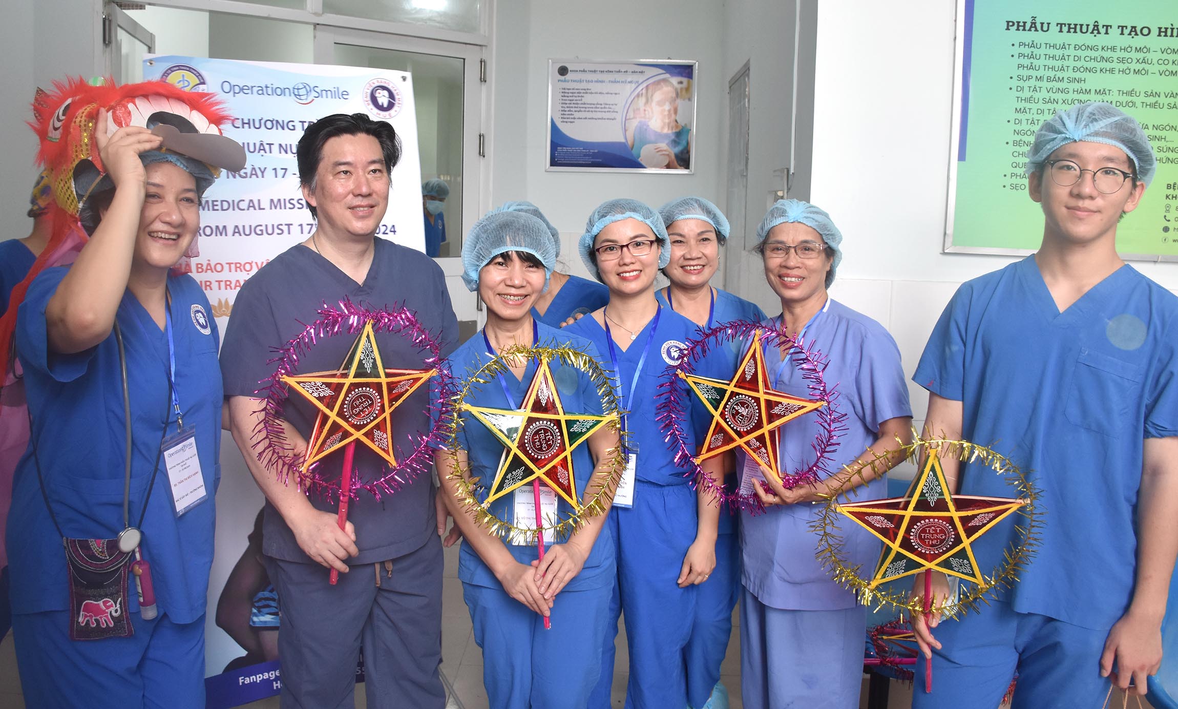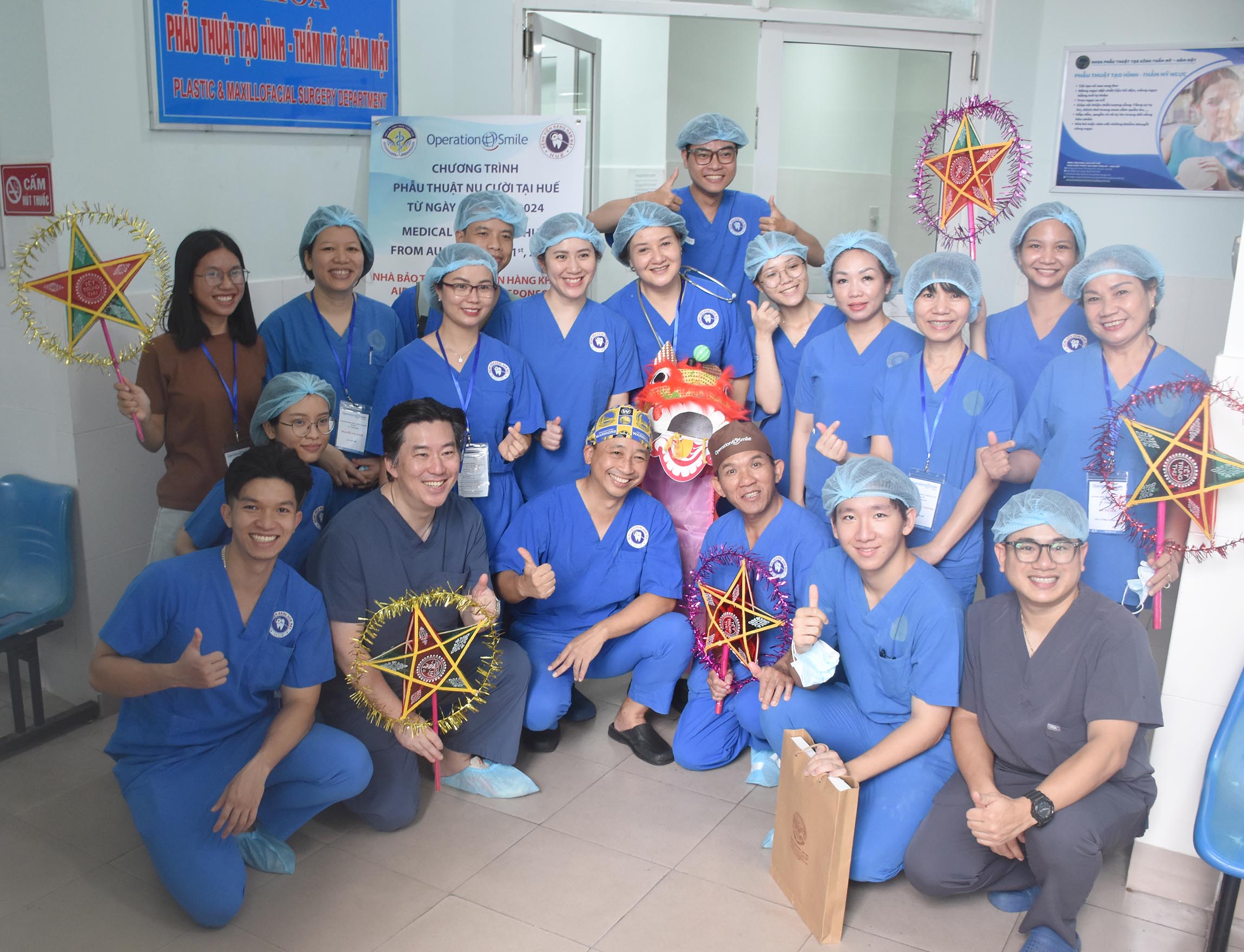Đợt này, Tổ chức Operation Smile, Inc. Việt Nam cùng Nhà tài trợ SIKA phối hợp với BV Răng Hàm Mặt Huế và Đoàn phẩu thuật là các đối tác của OS có 40 bác sĩ/điều dưỡng/kỹ thuật viên/tình nguyện viên là các chuyên gia về phẩu thuật thẩm mỹ/tái tạo/phục hồi chức năng vùng hàm mặt, tay chân đến từ ở các bệnh viện đầu ngành của Việt Nam và một số bác sỹ người Hàn Quốc.
