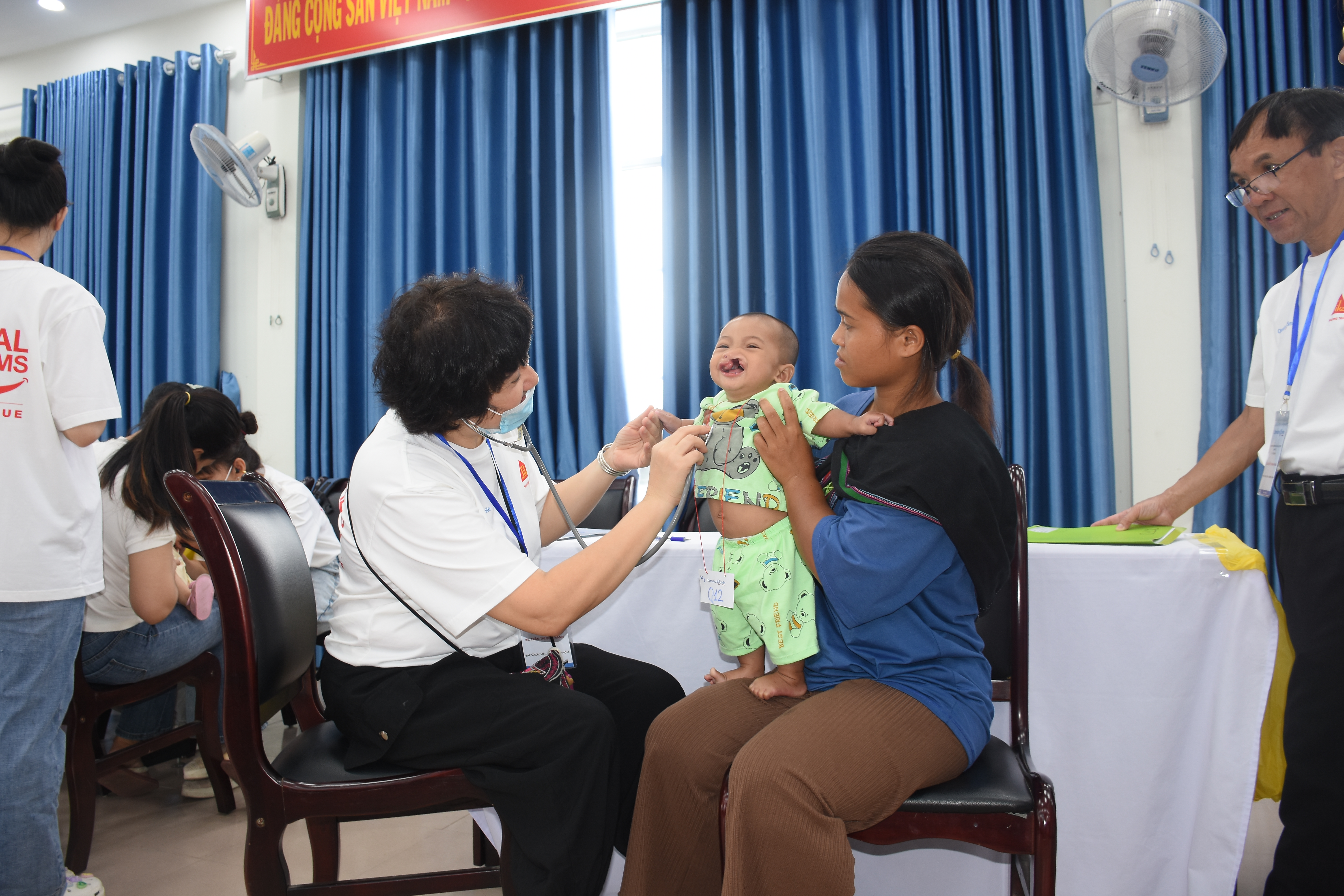 Ngay sau lễ khai mạc vào ngày 17/8, Đoàn đã nhanh chóng triển khai khám sàng lọc/phân loại cho hơn 120 trẻ dị tật bẩm sinh khe hở Môi - Vòm (hàm ếch); di chứng dị tật bẩm sinh như sẹo môi, lỗ thông vòm miệng, dị tật mũi; bệnh nhân sụp mí mắt; dính/thừa ngón chân, ngón tay và sẹo co rút di chứng và tiến hành phẩu thuật cho 62 trẻ đủ điều kiện về sức khỏe… Đa phần gia đình các trẻ đều có hoàn cảnh khó khăn và có một số trẻ là đồng bào người dân tộc thiểu số đến từ các tỉnh Thanh Hóa, Nghệ An, Hà Tỉnh, Quảng Bình, Quảng Trị, Thừa Thiên Huế, Quảng Nam, Đà Nẵng và một số tỉnh ở Tây Nguyên.