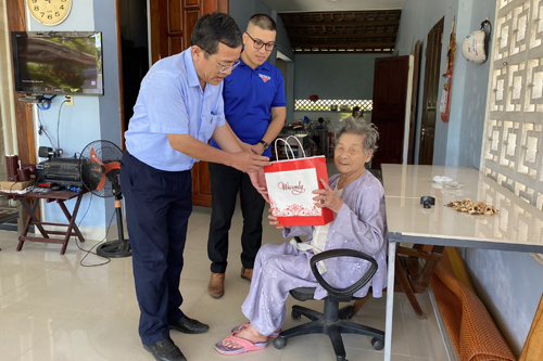 BsCKII Nguyễn Lê Tâm - Phó Giám đốc Phụ trách Trung tâm KSBT thăm và tặng quà gia đình đoàn viên Lê Hiệp