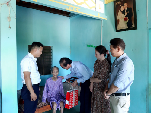 BsCKII Hoàng Văn Thám Phó Giám đốc Trung tâm KSBT thăm và tặng quà gia đình đoàn viên Nguyễn Văn Cương