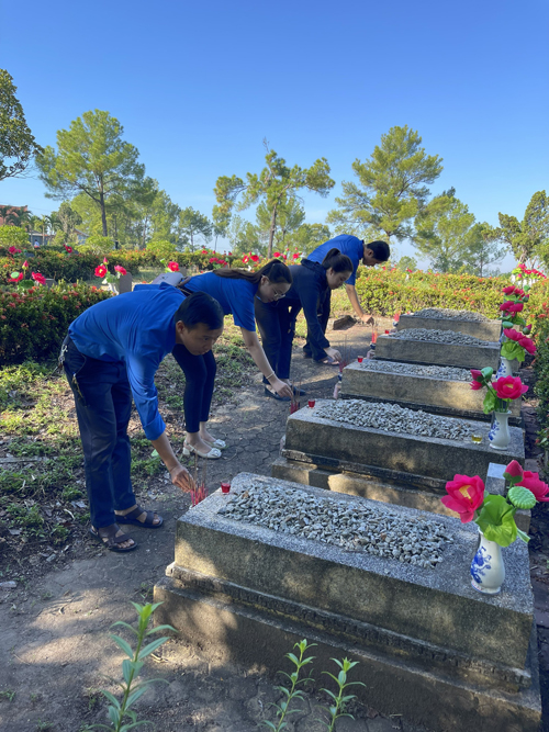 Đoàn viên Thanh niên Chi đoàn Trung tâm Kiểm soát bệnh tật dâng hương tại Nghĩa trang liệt sĩ Thành phố Huế