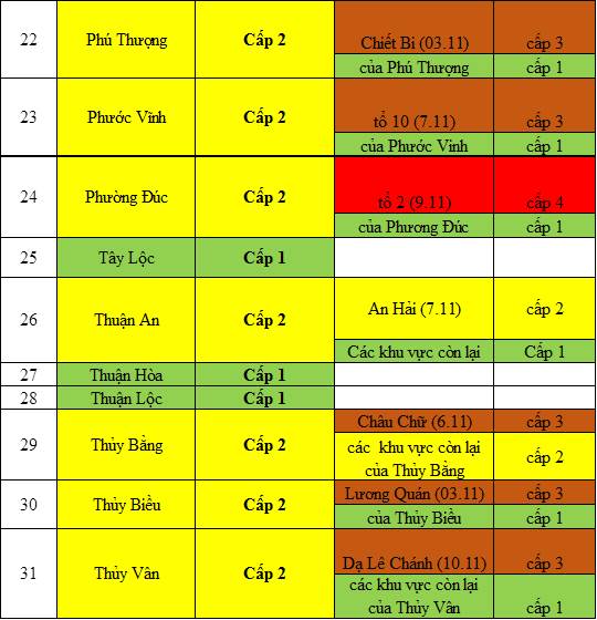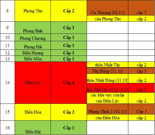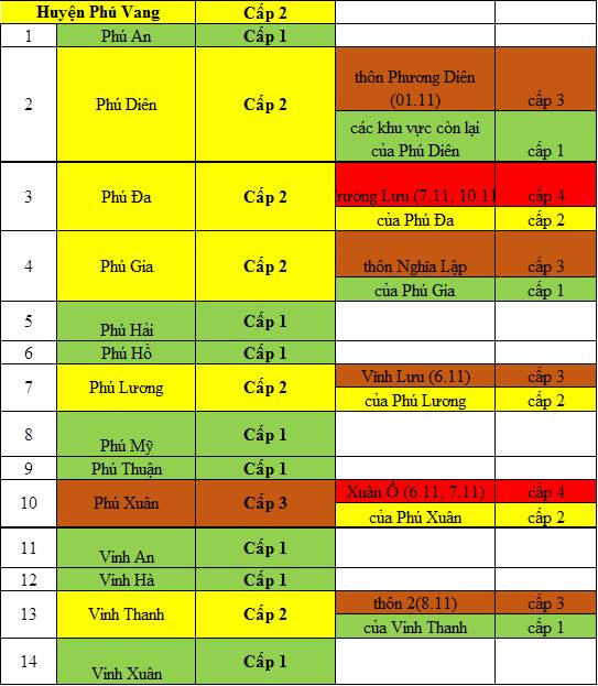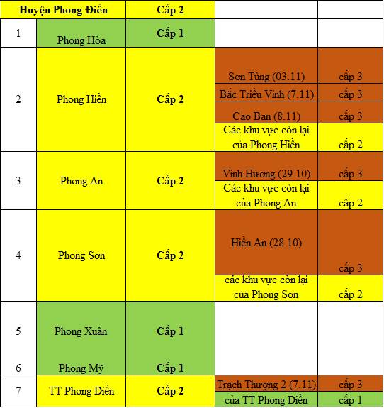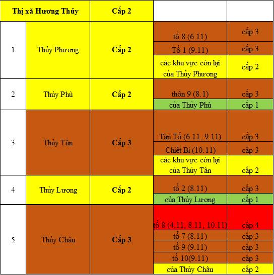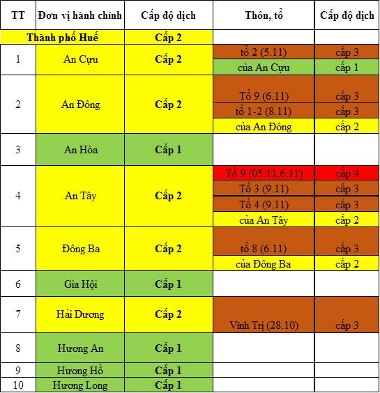 Cấp độ dịch ngày 10 tháng 11 năm 2021 tại tỉnh Thừa Thiên Huế