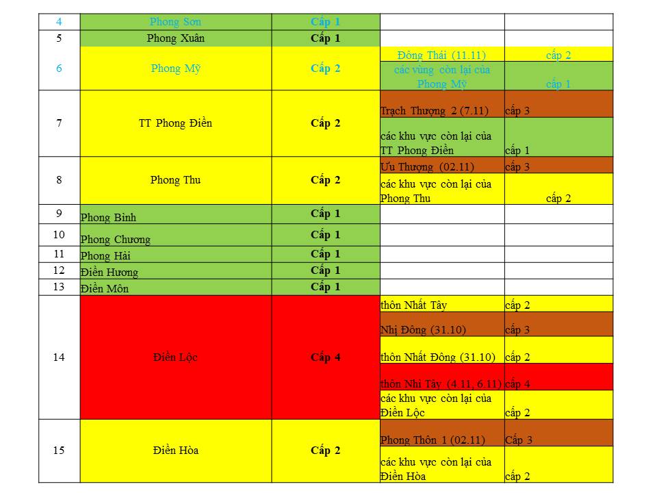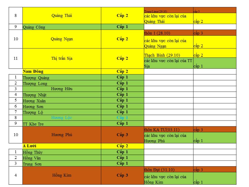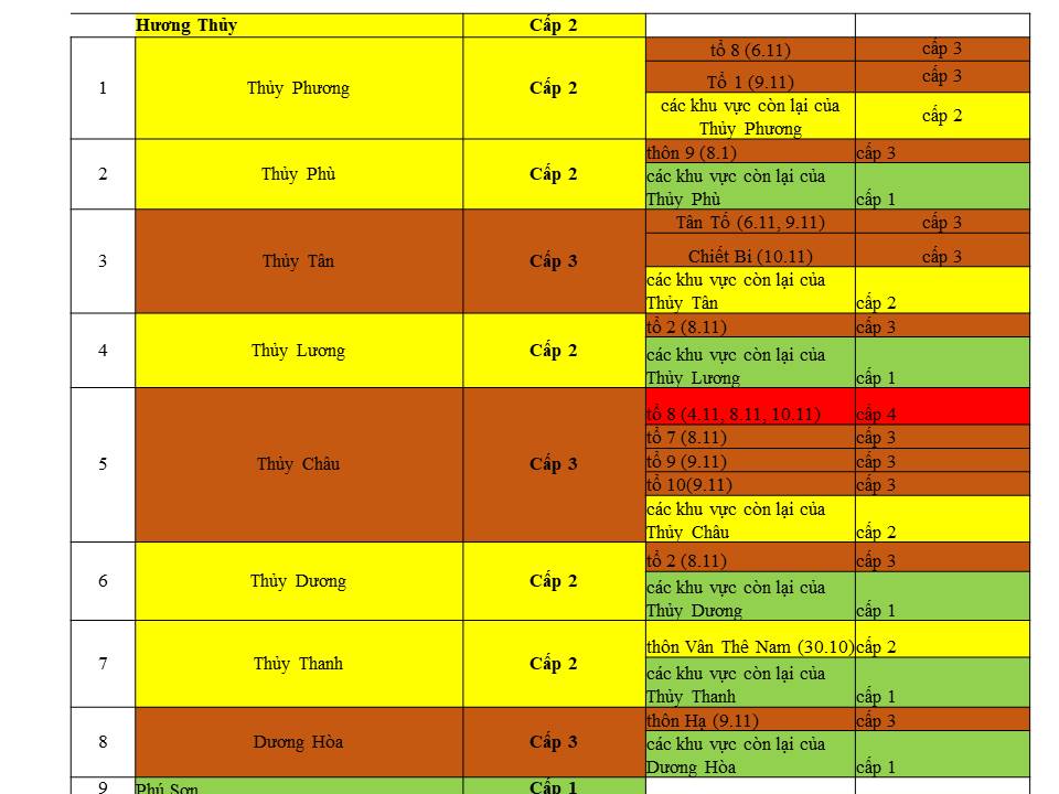 Cấp độ dịch ngày 10 tháng 11 năm 2021 tại tỉnh Thừa Thiên Huế