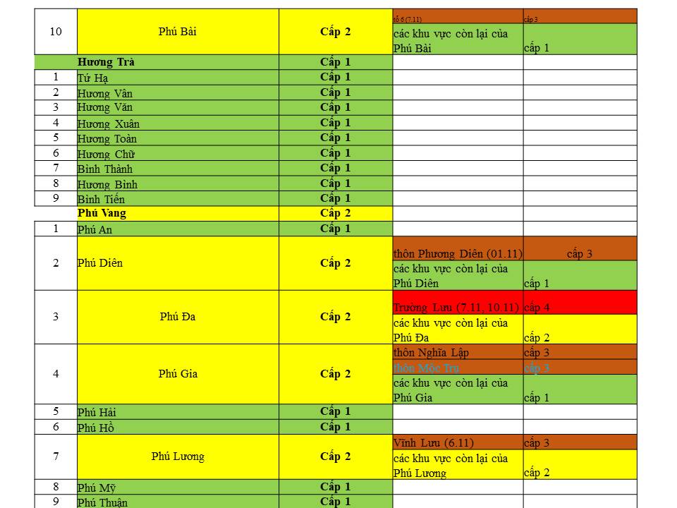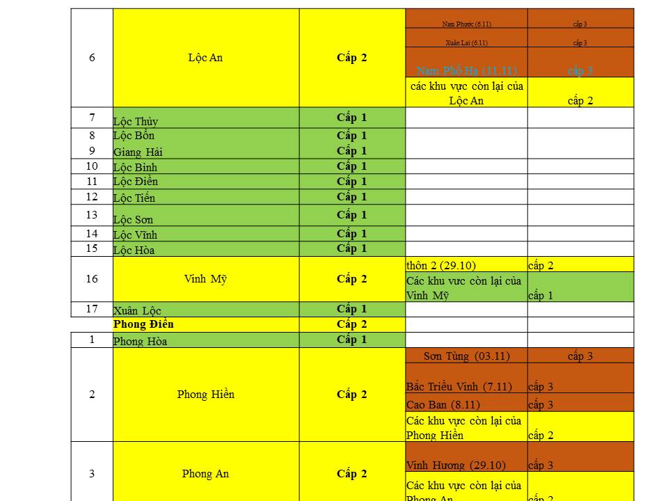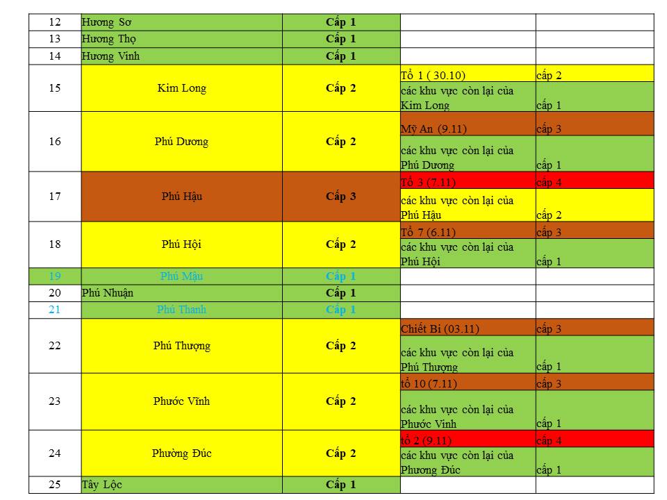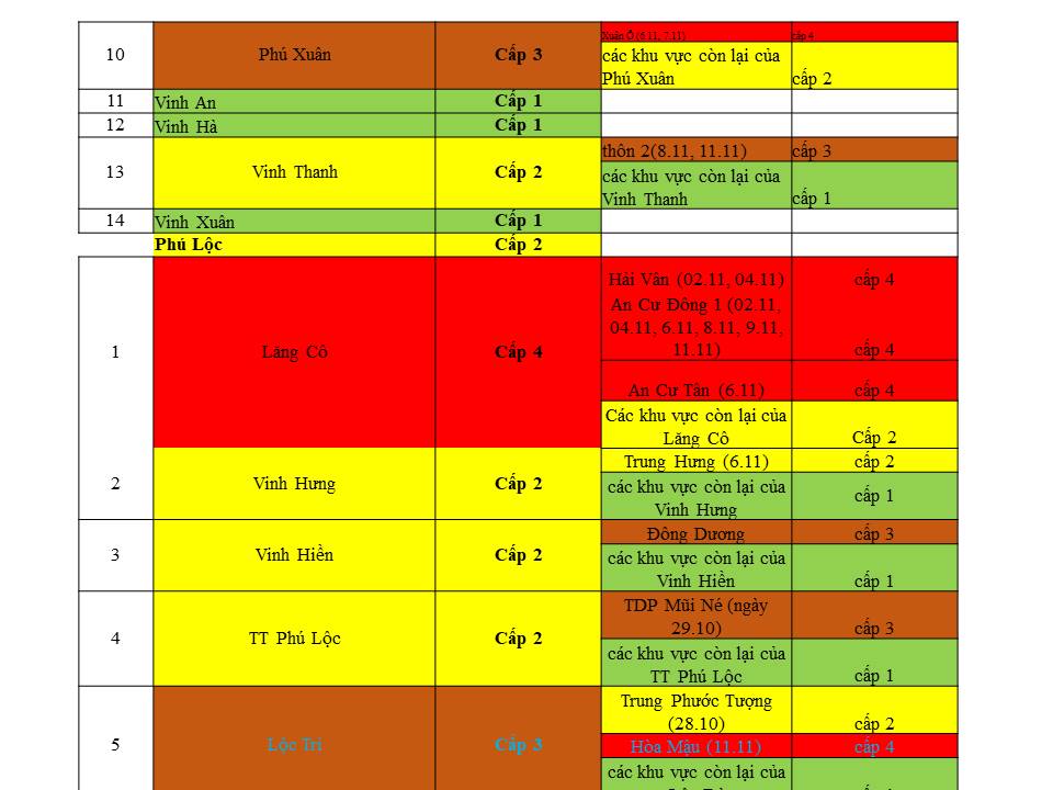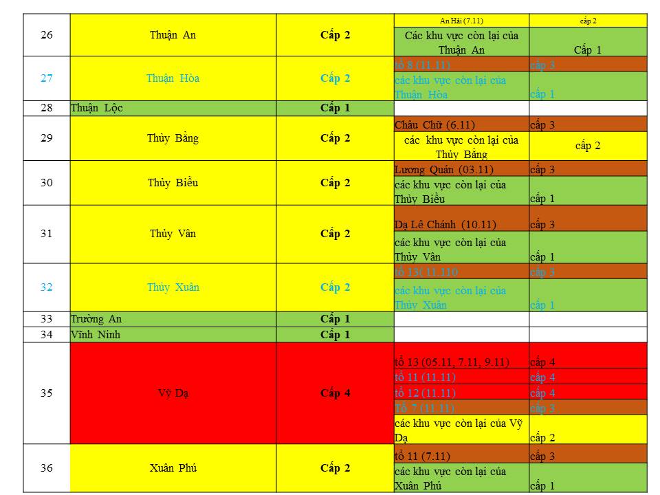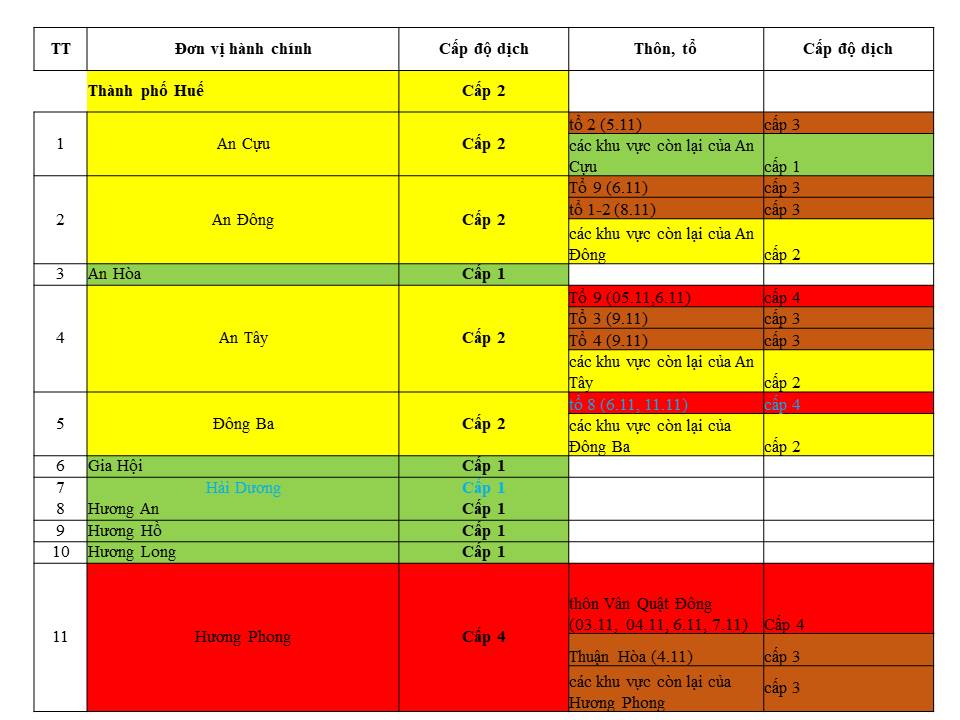 Cấp độ dịch ngày 11/11/2021 tại Thừa Thiên Huế