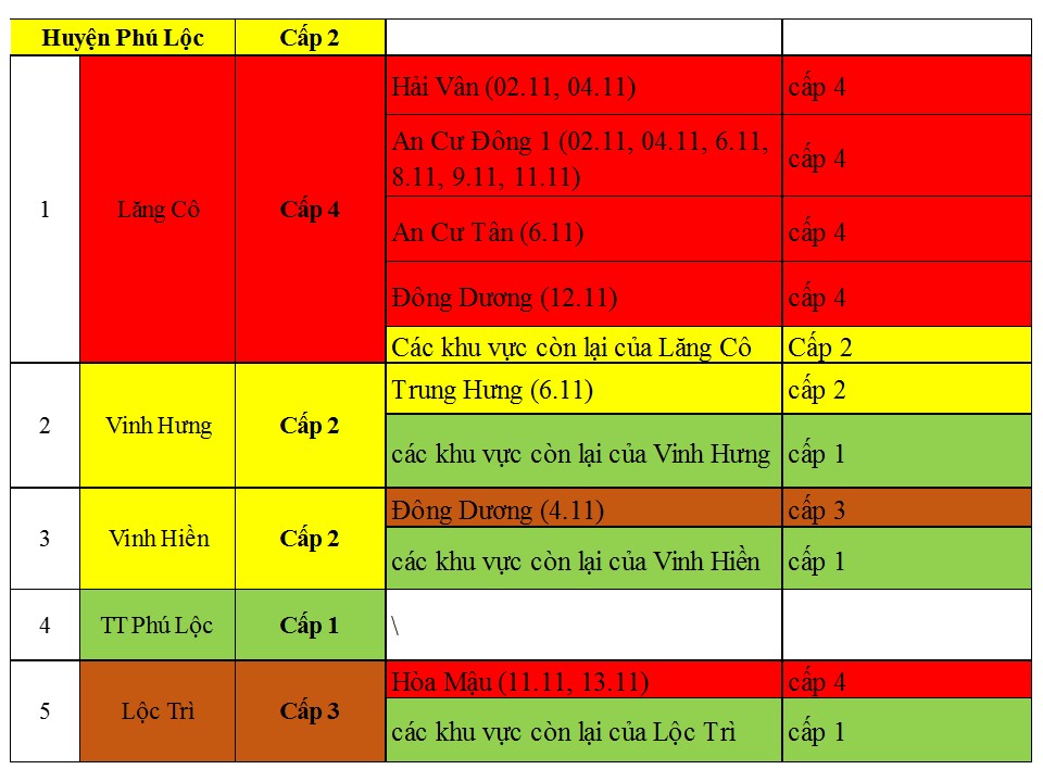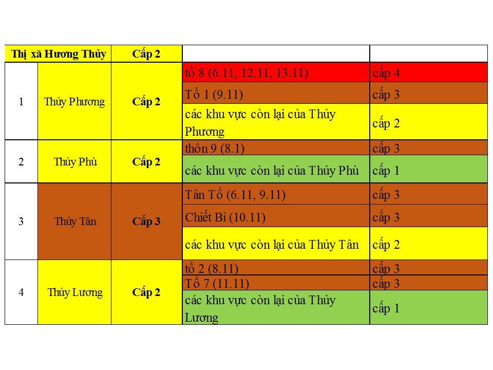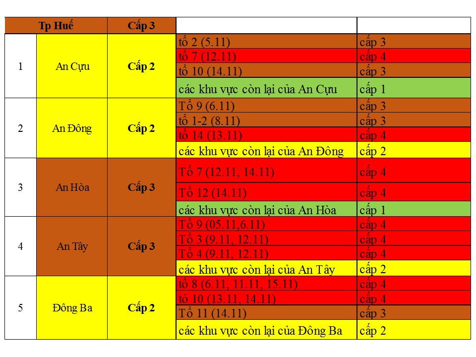 Cấp độ dịch ngày 15/11/2021 tại Thừa Thiên Huế