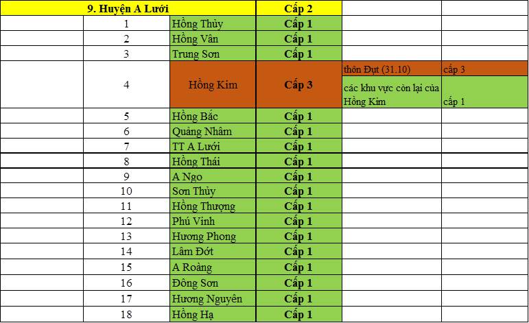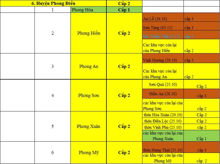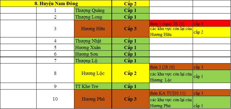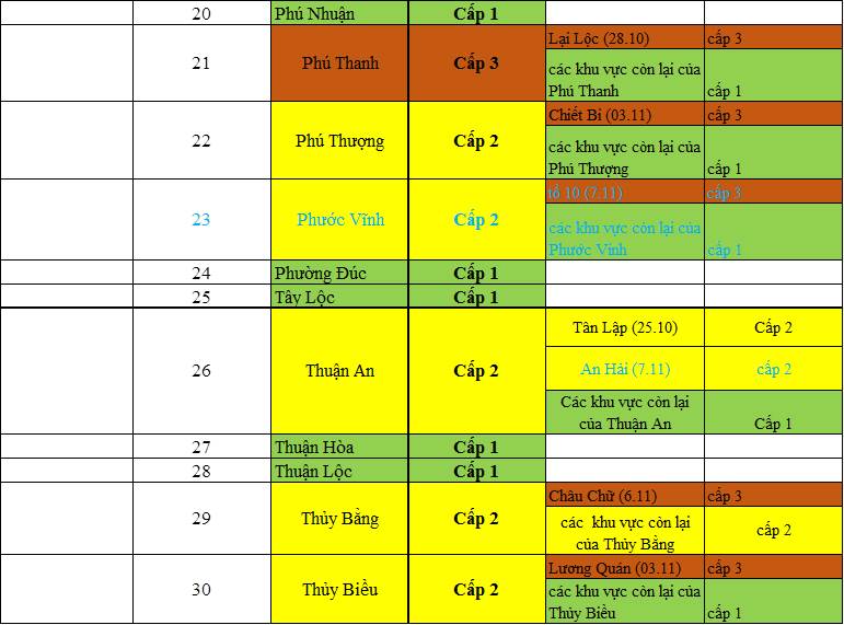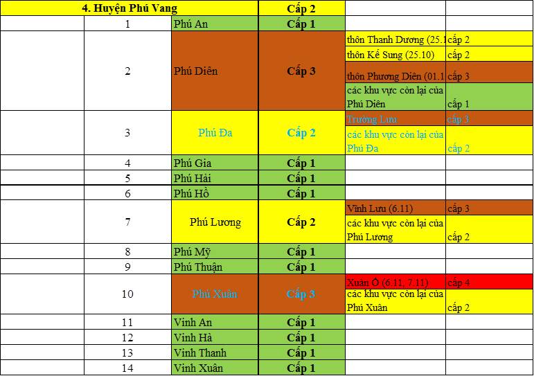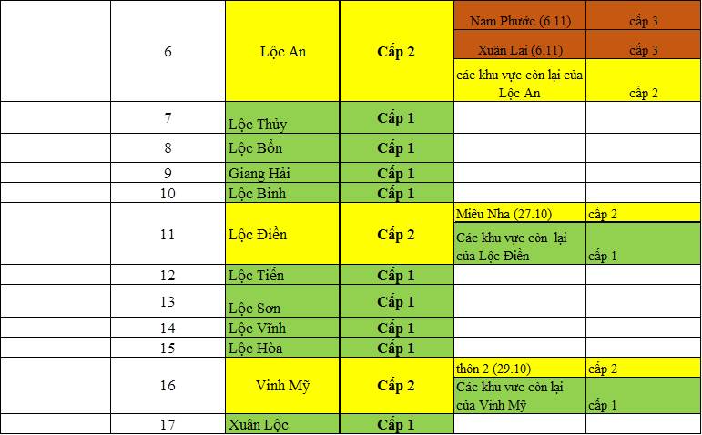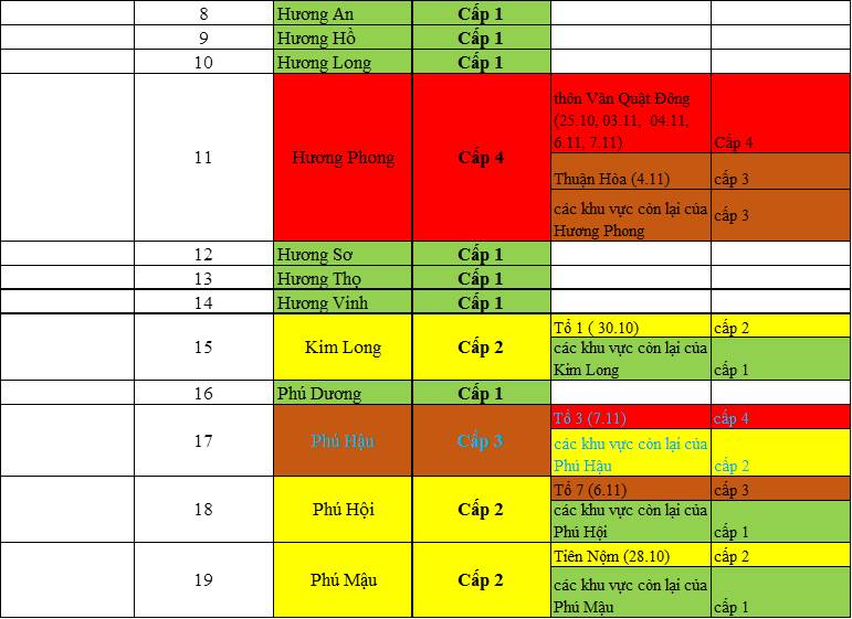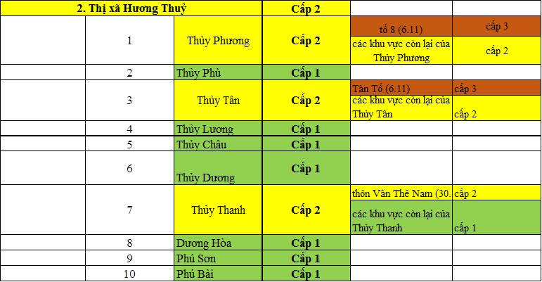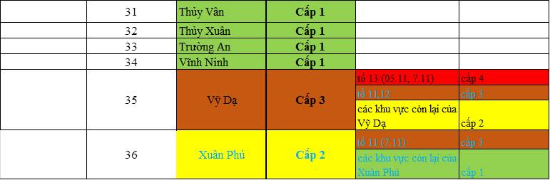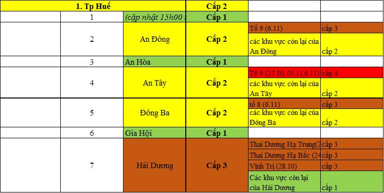 Cấp độ dịch ngày 7/11/2021 tại tỉnh Thừa Thiên Huế