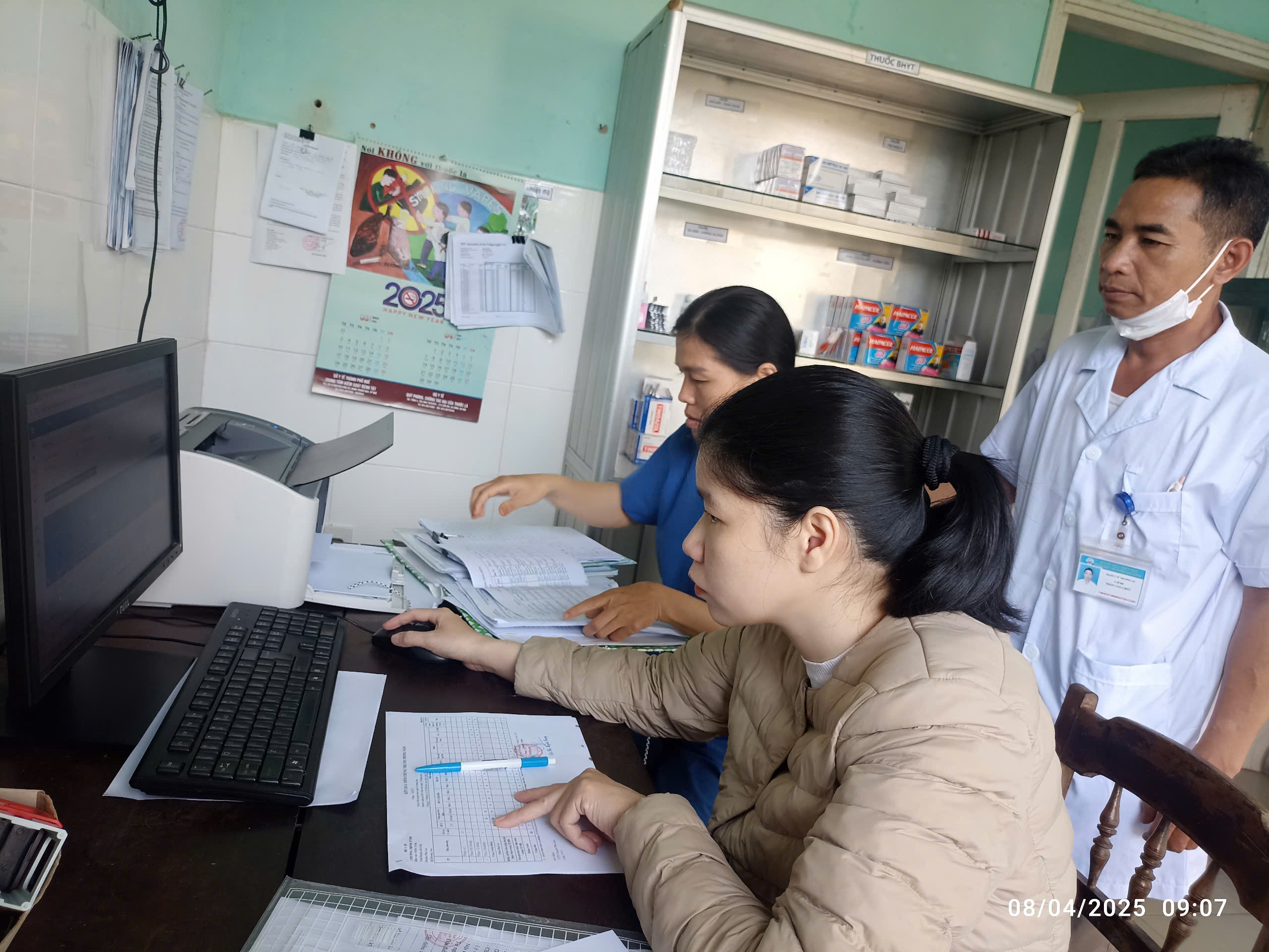 Cán bộ CDC kiểm tra báo cáo trên phần mềm TCMR tại TYT Hương Sơn huyện Phú Lộc.