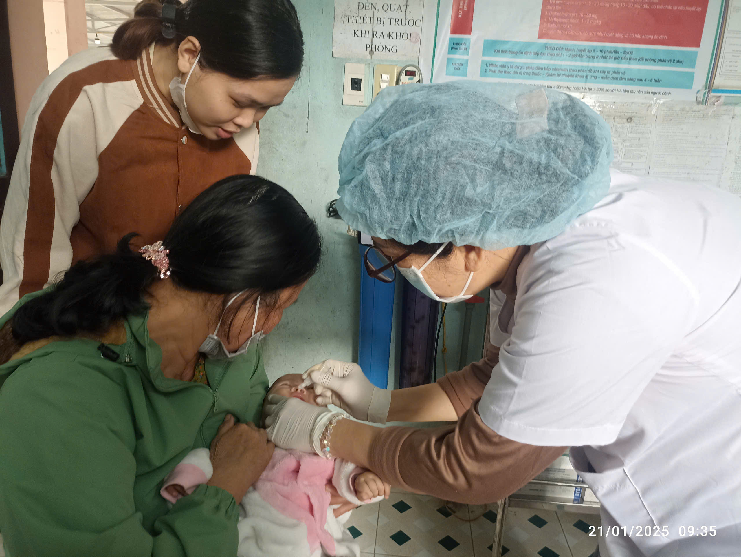 Đoàn đã nhắc nhở CBYT của TYT luôn thực hiện đúng quy trình tiêm chủng, thường xuyên tiến hành rà soát đối tượng trong diện TCMR để quản lý; thống kê gửi báo cáo về TTYT huyện tổng hợp báo cáo CDC tỉnh đúng quy định. Đoàn đã lắng nghe và hỗ trợ xử lý những vướng mắc khi xử lý trên phần mềm tiêm chủng Quốc gia và đề nghị bổ sung: tên trẻ ở những đối tượng vẫn còn tên mẹ; Chuyển đối tượng không thuộc địa bàn quản lý; Bổ sung mũi tiêm vắc xin uốn ván của mẹ để trên phần mềm thể hiện trẻ được bảo vệ uốn ván sơ sinh; Truy vấn số liệu để thống kê những trẻ đi tiêm dịch vụ,….