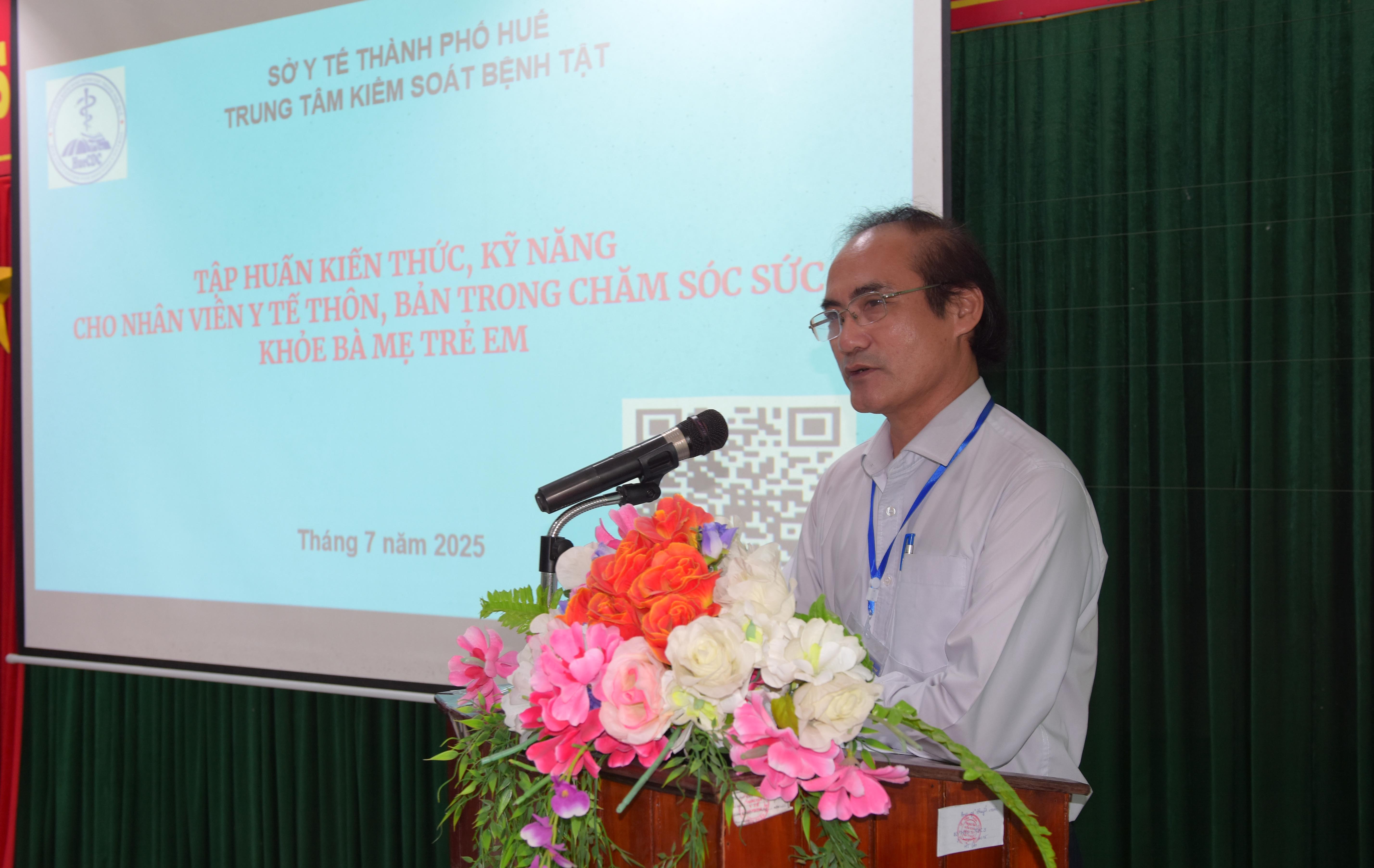 BSCKII. Hoàng Văn Thám - Phó Giám đốc CDC Huế dự, phát biểu khai mạc và chỉ đạo lớp tập huấn.
