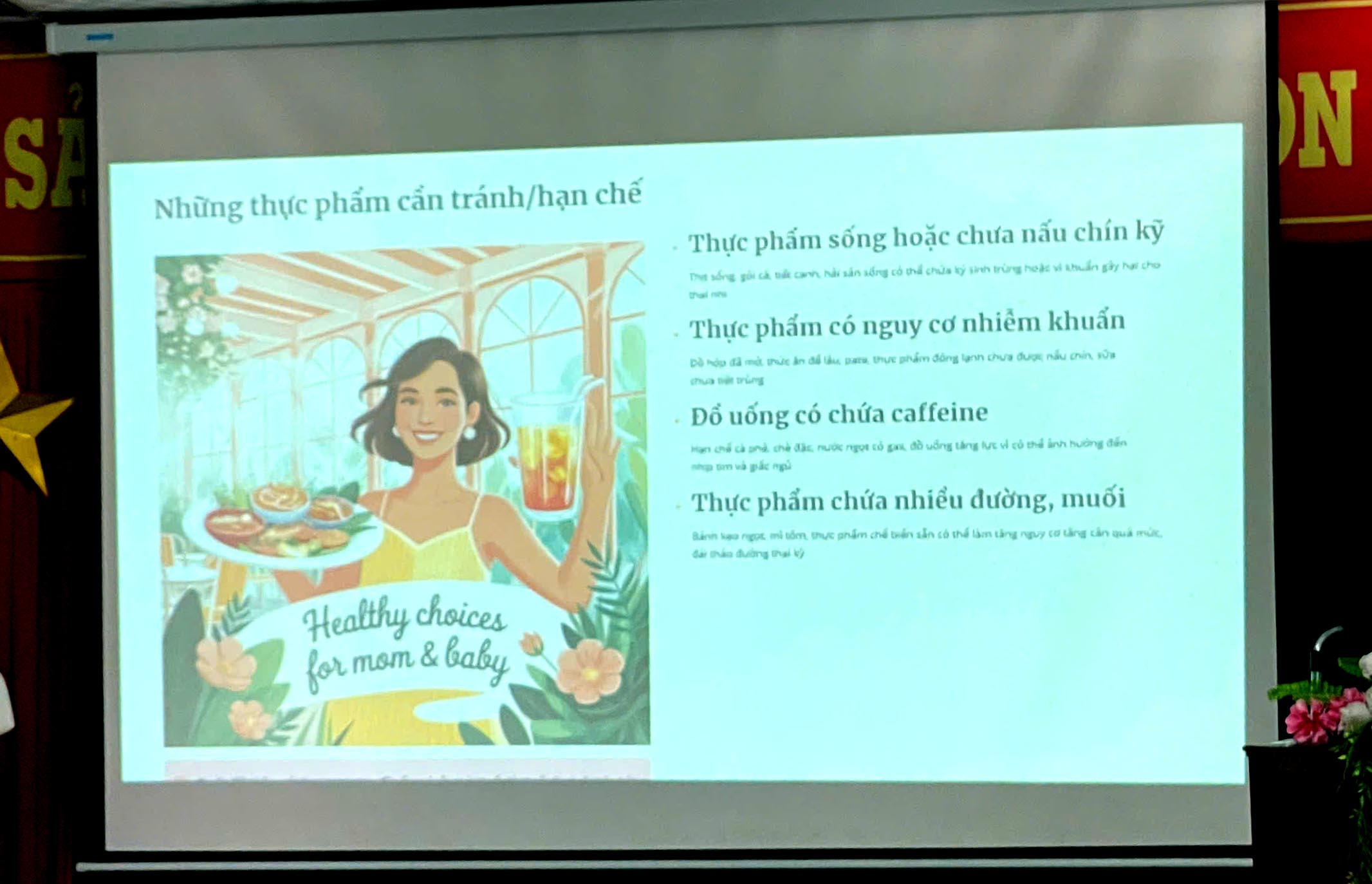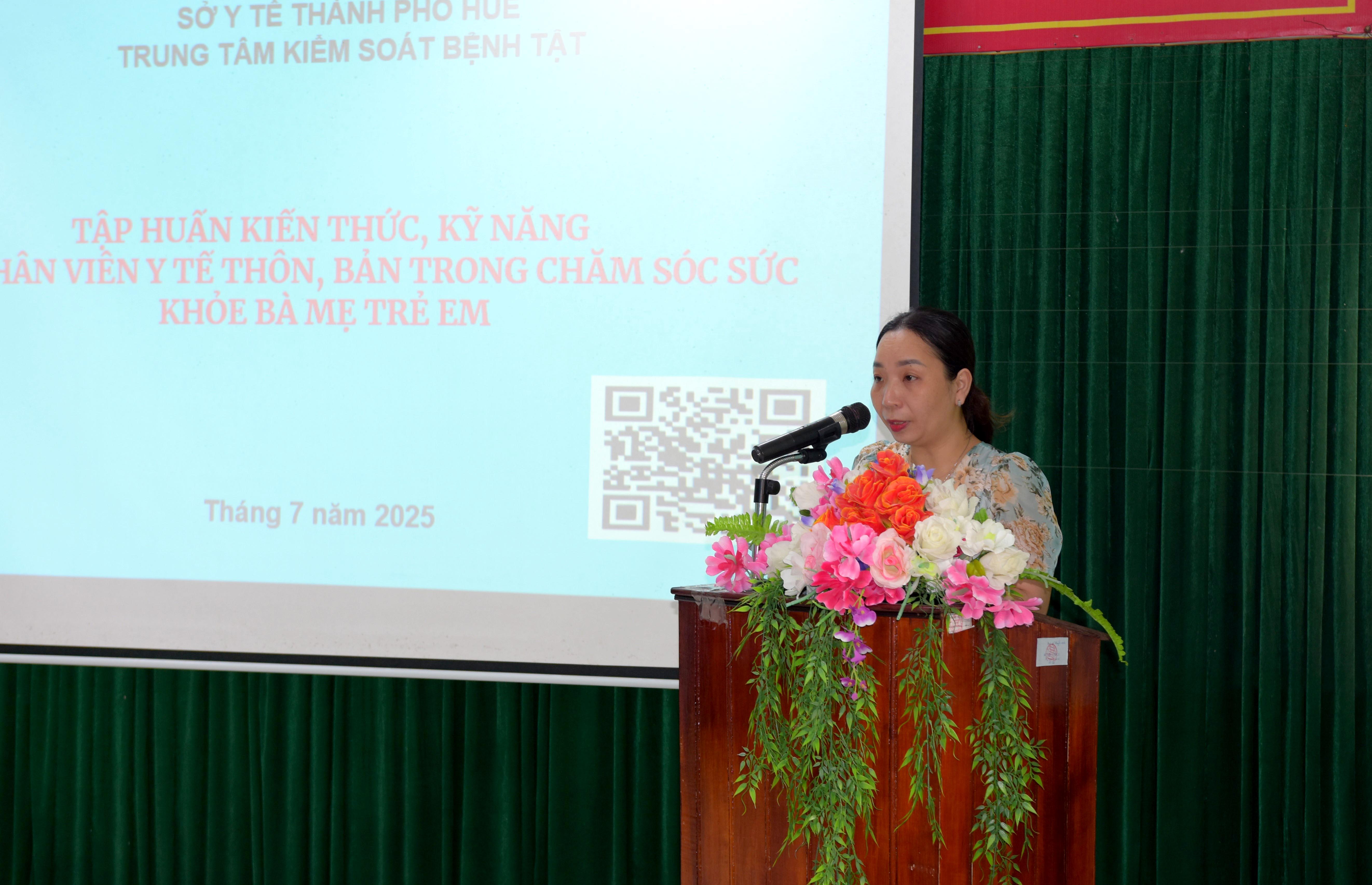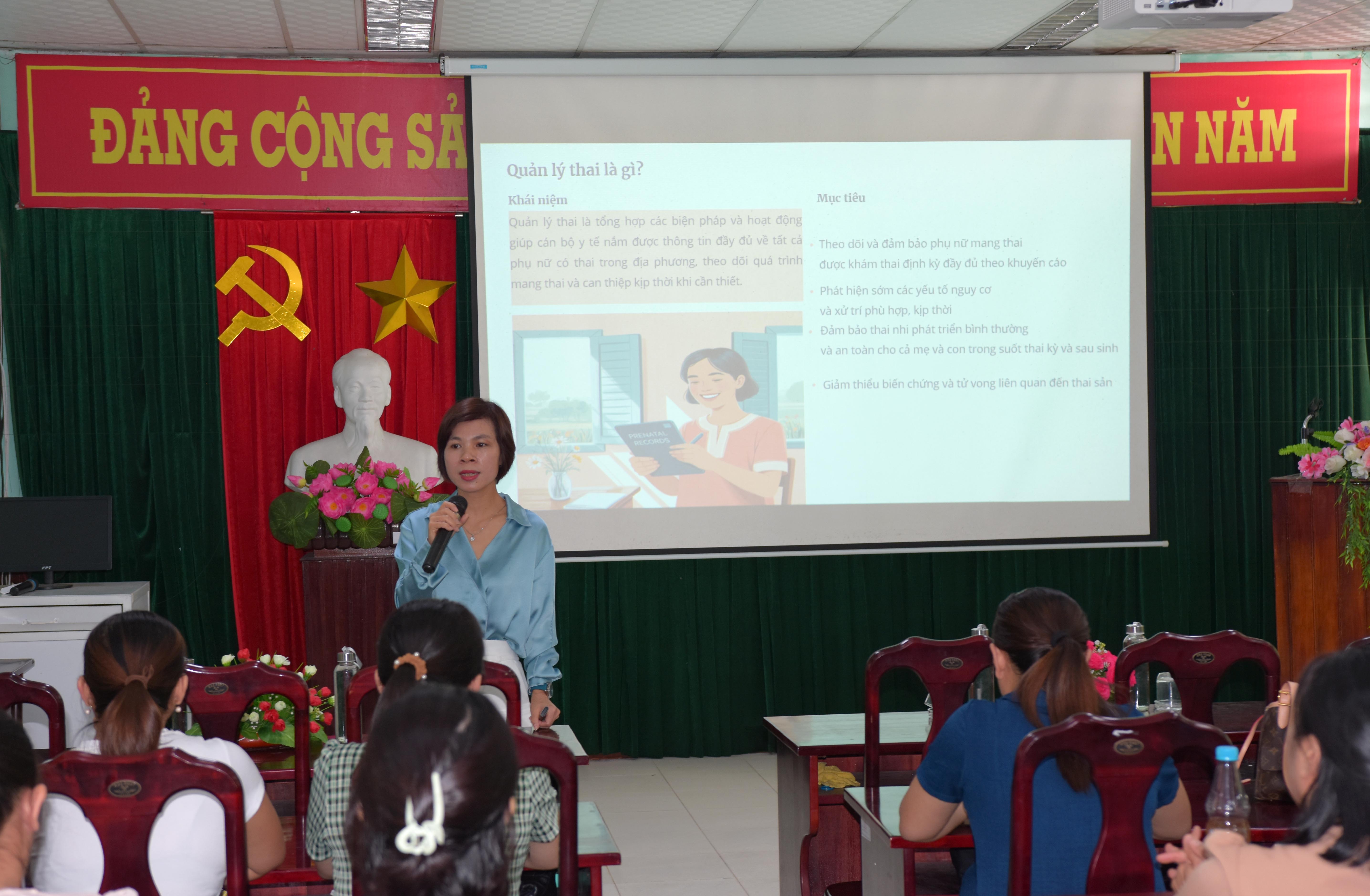ThS.BSCKI Hà Thị Mỹ Dung - Trưởng khoa Chăm sóc SKSS - CDC Huế, giảng viên chính trình bày các nội dung tại lớp tập huấn.