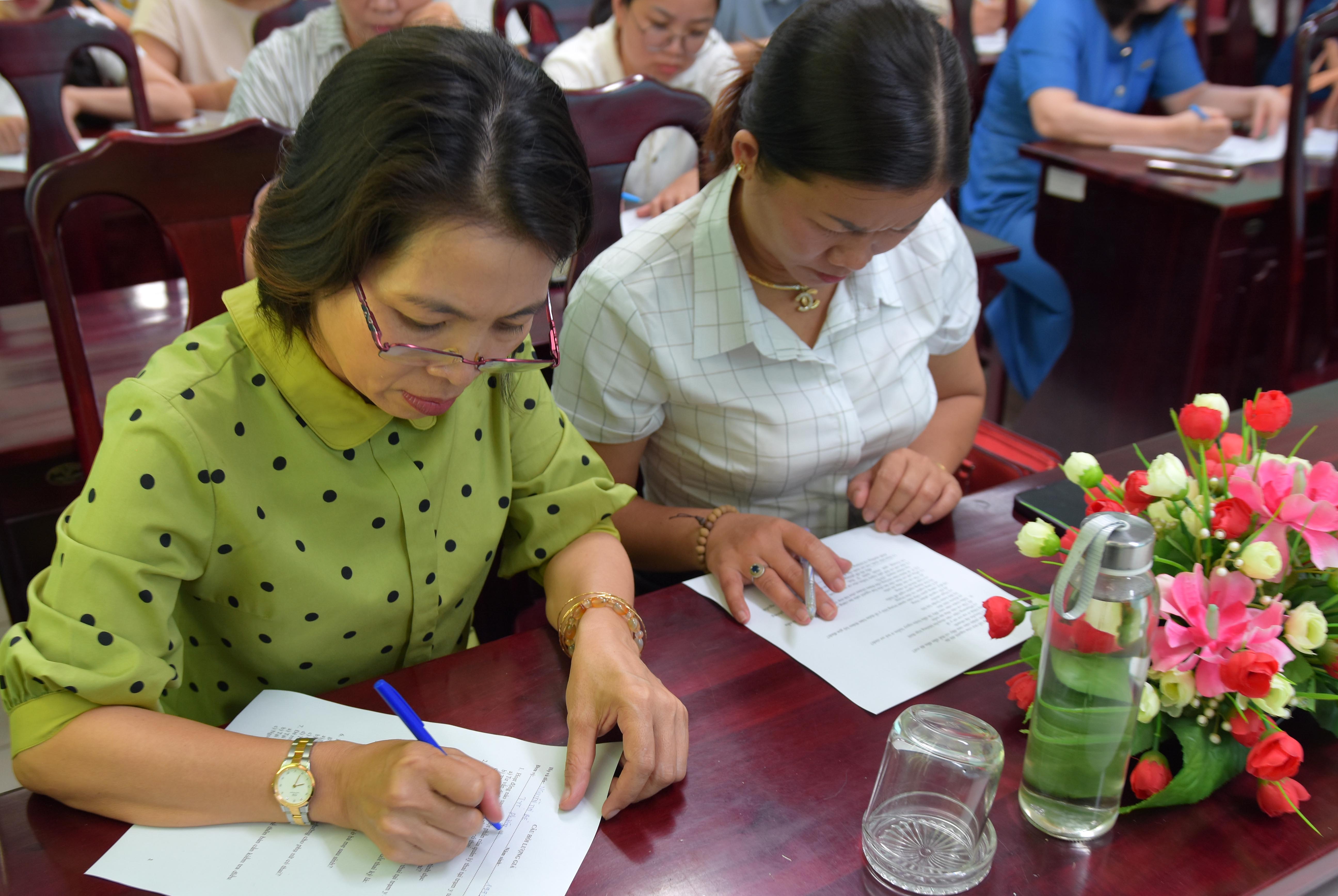 Lớp tập huấn tổ chức khảo sát, đánh giá kiến thức trước và sau tập huấn.