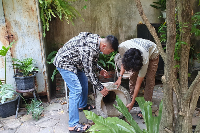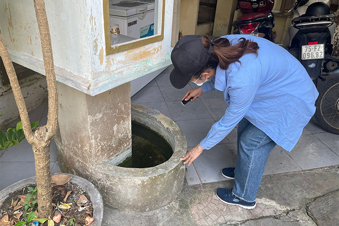 Cán bộ CDC tỉnh tìm bọ gậy ở vật chứa tại phường An Cựu (TP Huế)