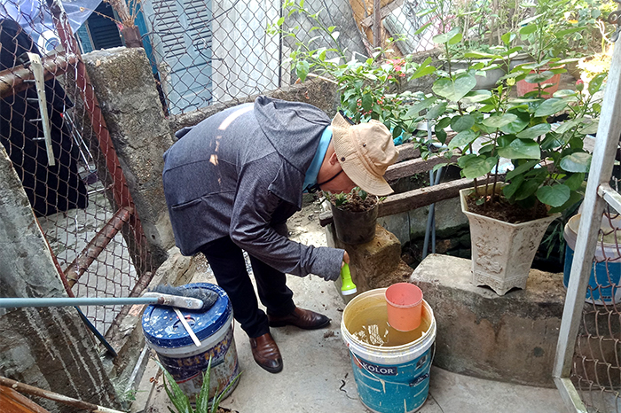 Xử lý vật chứa có lăng quăng tại nhà người dân phường Xuân Phú (TP Huế)